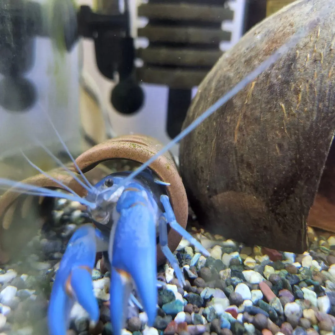 탈출의 명수인 가재의 탈출을 막기 위한 유리뚜껑을 들어내고 어항 집게로 코코넛껍질을 살며시 들어보았다. 잘 때 집을 건드리면 후다닥 일어나 자세를 고쳐 엎드릴 녀석이 꼼짝을 하지 않았다.
