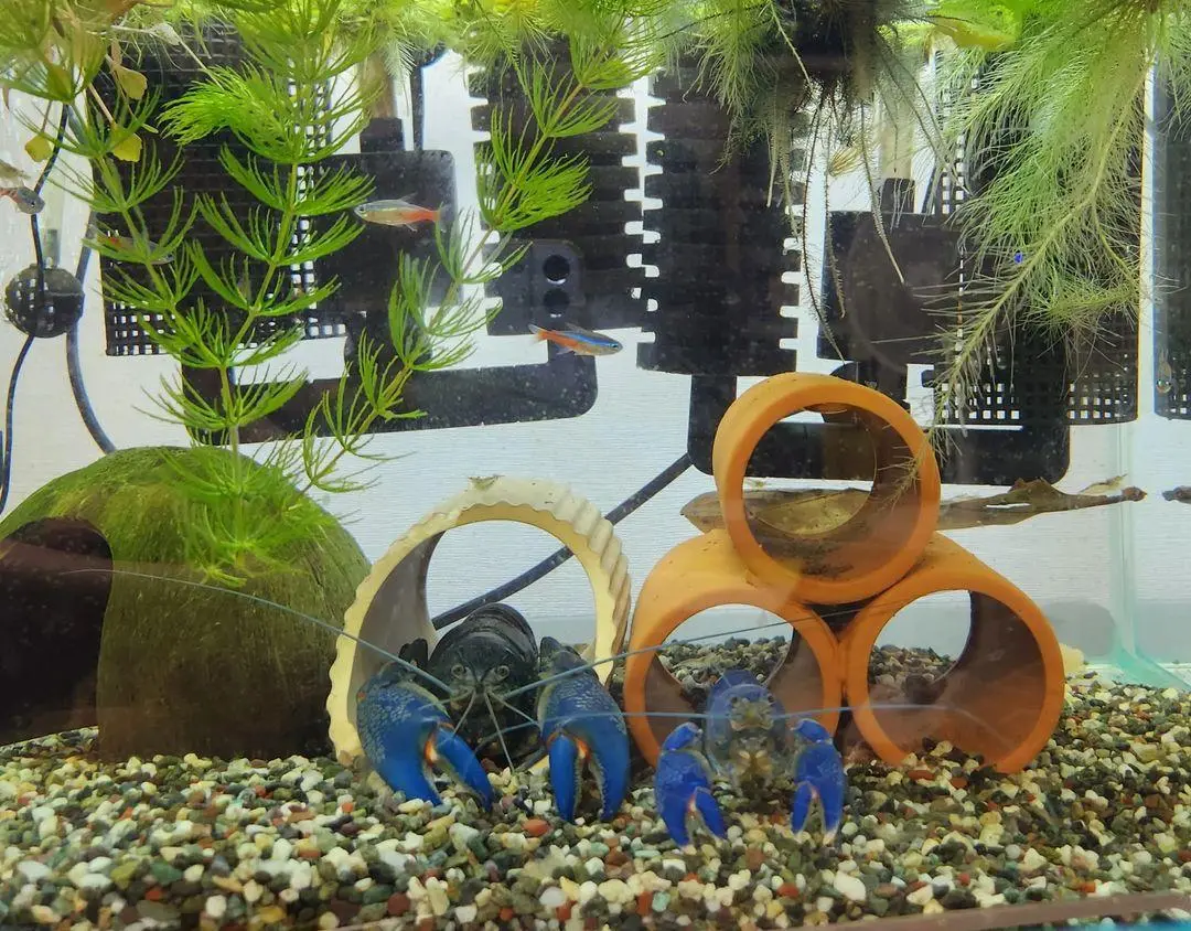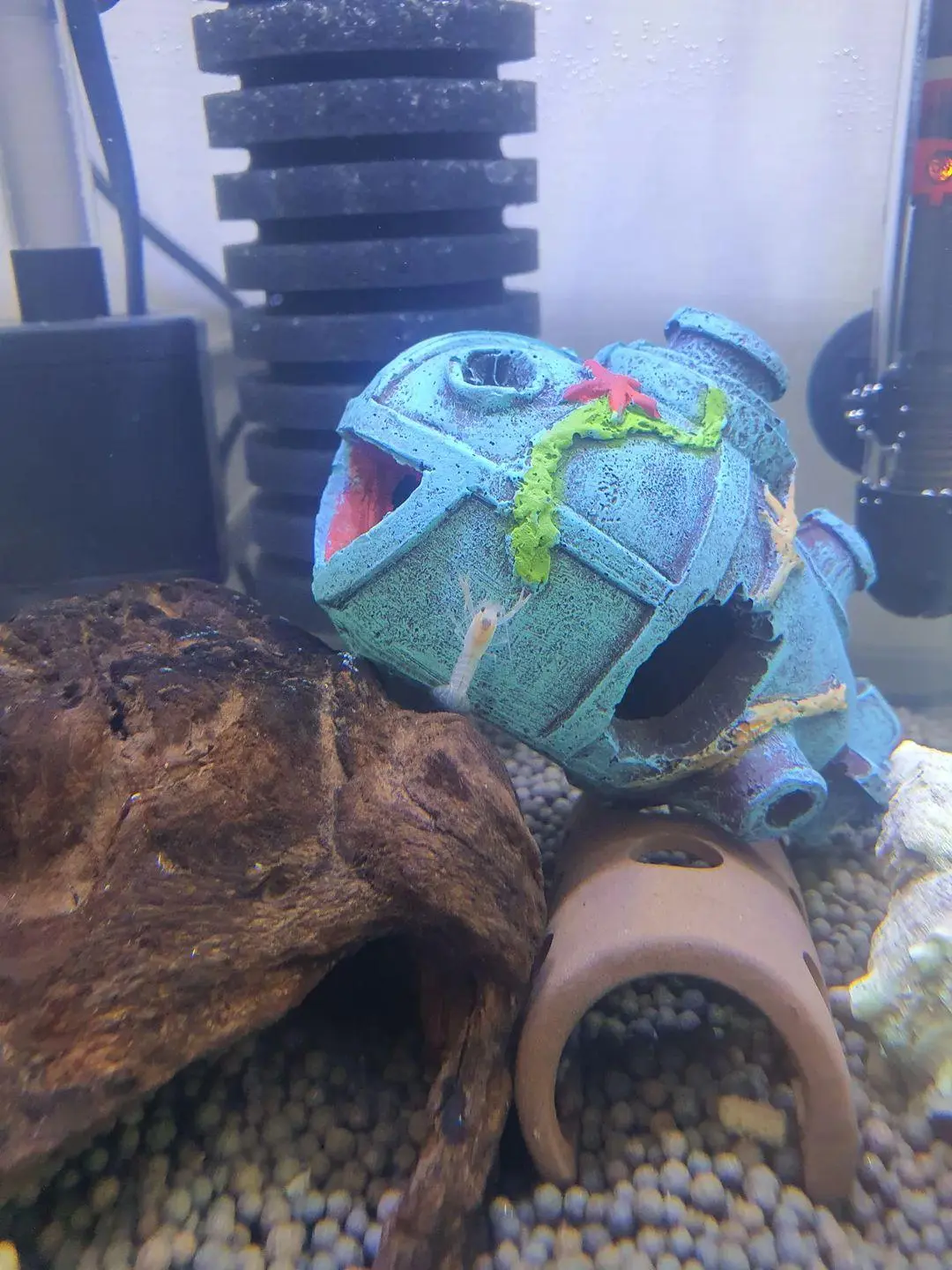 처음 설치해 본 어항에 처음 키워보는 가재라 물관리 방법이 서툴렀던지 김가재 앞에 데려온 다른 치가재들은 대부분 제대로 크기 전에 탈피에 실패해서 죽었다.