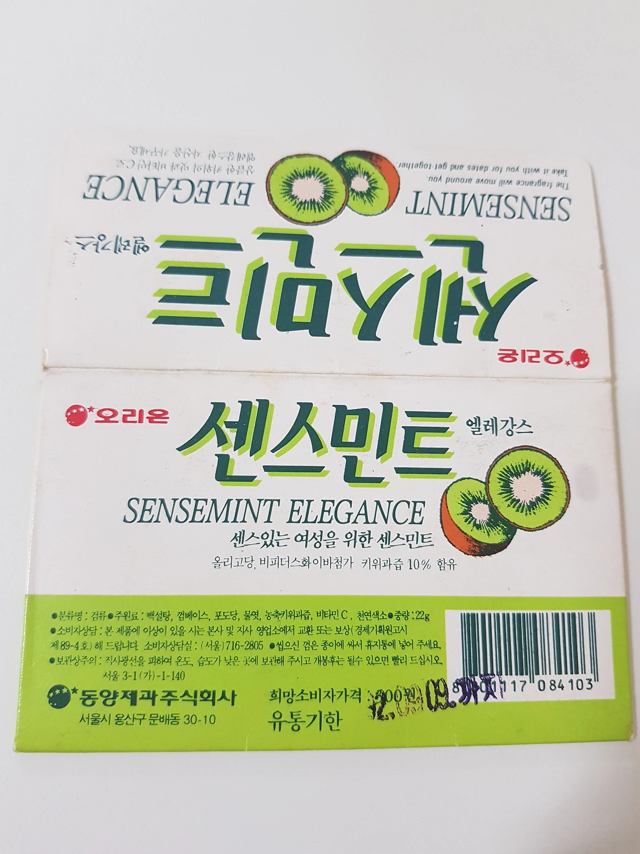 국민학교 6학년 때 받은 C의 편지봉투에서 딱딱한 종이가 만져져 꺼냈더니 29년 전의 센스민트가 나왔다. 조금 빛바래긴 했지만 몇 년 전 거라고 해도 믿을 만큼 잘 보관되어있었다. 그 시절 이름에 민트가 들어가는 유일한 제품 아니었던가.