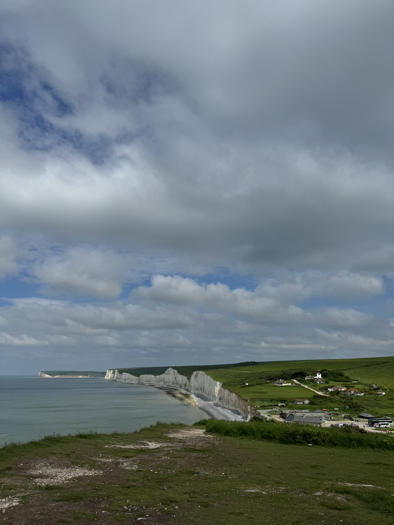 영국에서 근교 투어 하나를 신청했다.('마이리얼트립' 앱으로 근교, 시티, 체험 투어를 할 수 있으니 가기 힘든 곳이 있다면 투어를 이용해 보는 것을 추천한다) 내가 신청한 투어는 세븐시스터즈와 알프리스톤, 브라이튼 이렇게 3곳을 가는 투어였다. 혼자 가기엔 부담이 많이 되는 곳들이라 투어로 신청하여 다녀왔다. 아침 일찍 모임 장소로 나가야 해서 새벽에 일어나 준비를 하고 버스를 타고 모임 장소로 갔다. 대부분 친구나 연인분들이었지만 그 사이에서도 나처럼 혼자 오신 분들이 계셨다. 나는 용기를 내어 대화를 시도했고 그분과 버스도 같이 타게 되었다. 그렇게 30분 정도를 달렸을까 세븐시스터즈에 도착을 했다.(세븐시스터즈는 7개의 능선이 일곱 명의 수녀가 서 있는 것과 닮았다고 하여 붙여진 이름으로 영국 근교 여행으로 많이 가는 곳이다.) 도착을 하고 버스에서 내리니 가이드 님이 "끝까지 올라갈 때까지 뒤를 돌아보시면 절대 안 돼요"라고 하셨다. 이유가 궁금했지만 일단 언덕을 올라가기 시작했다. 그리고 마침내 나는 뒤를 돌아봤다. "우와" 나는 감탄을 했다. 나는 절벽 위에 서 있었고 바다들과 절벽들이 내 눈으로 들어왔다.