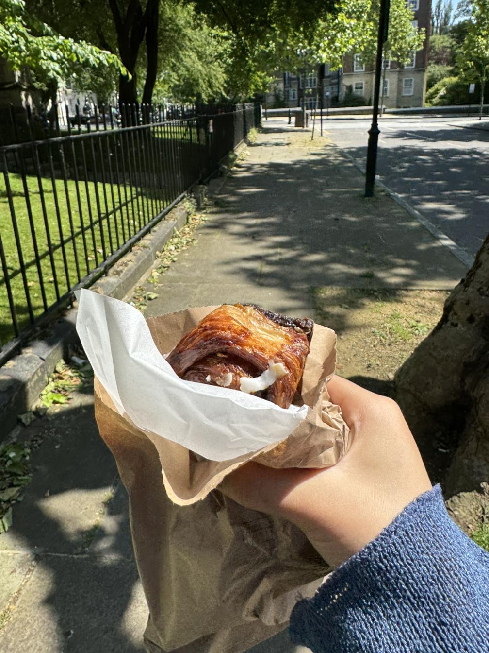 아침 겸 점심으로 선데이로스트를 먹고 싶어 10시쯤 식당에 갔는데 선데이로스트는 12시부터 시작이라 그때 다시 오라고 했다. 아침이라도 먹고 올 걸 후회하며 걷던 중 근처 시나몬롤 가게를 찾아둔 게 생각나서 곧장 시나몬롤 가게로 향했다. 가게 안은 달콤한 냄새와 시나몬 향으로 가득 찼다. 그 맛있는 냄새에 나는 홀린 듯 순식간에 시나몬롤 하나를 포장해서 나왔다. 하지만 근처에 앉아서 먹을 곳이 안 보였다. 도로 옆 벤치엔 이미 사람들이 앉아있어서 다른 곳을 찾아봐야 했다. 그렇게 지도도 보지 않고 발이 가는 대로 10분 정도 걸었을까 작은 공원이 보였다. 들어가 보니 벤치도 많이 놓여있고 강아지 산책하는 사람들이 있었다. 나는 그렇게 이름도 모르는 작은 공원으로 들어가 벤치에 앉았다. 웃기게도 시나몬롤은 오는 길에 너무 배고파서 다 먹어버렸다. 그래서 그냥 점심때까지 공원에 앉아서 날씨를 만끽하며 잠깐 쉬기로 했다. 지저귀는 새들의 소리와 강아지들이 뛰는 소리, 조곤조곤 산책하는 사람들의 대화소리로 공원은 너무 평온했다. 그런 시간은 왜 그렇게 빨리 흘러가는지 어느새 식당으로 가야 하는 시간이 되어 아쉬운 마음을 뒤로한 채 발걸음을 옮겼다.