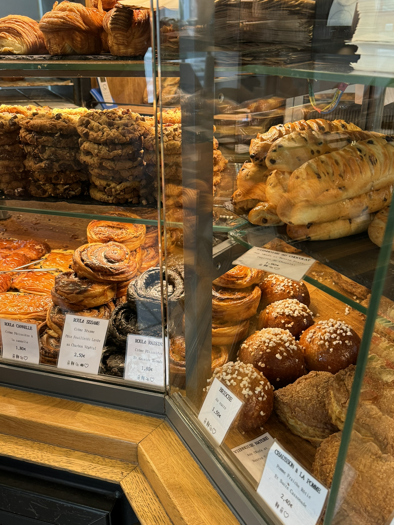 파리의 불랑주리(‘빵집’을 의미) 중에서도 가장 기대를 했던 불랑주리가 있었다. 숙소에서 거리가 꽤 있는 곳이라 지하철을 타고 가야 했다. 파리에서 지하철을 처음 타보는 거라 나가기 전부터 무섭기도 하고 긴장도 됐다. 하지만 괜한 걱정이었다. 아침 시간이라 지하철에 사람은 많았지만 큰 불편함은 없었다. 조금 놀라기도 했고 좋았던 점 하나를 말해보자면, 자리가 없어서 일어서 있었는데 바로 앞에 앉아계신 할머니와 할아버지께서 나와 눈이 마주치니 활짝 웃으시며 미소를 지어주신 게 인상적이었다. 와인 잔을 부딪칠 때도 눈을 마주 보는 게 예의인 프랑스라는 나라의 사랑스러운 문화인 걸까? 싶은 생각이 들었고, 나도 할머니와 할아버지께 미소로 화답을 했다. 아침부터 작은 행동에 기분이 좋아지는 순간이었다.