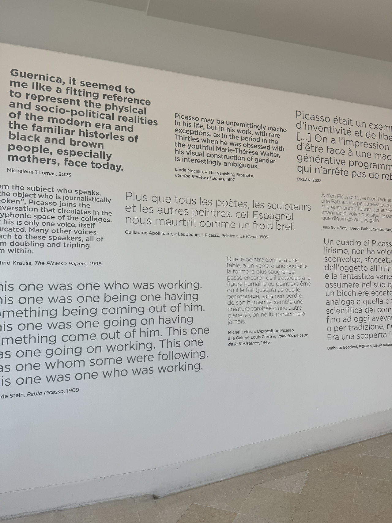 오늘 갈 미술관은 피카소 미술관이다. 피카소는 너무나도 유명한 화가이기에 가볼 수밖에 없었다. 역시나 프랑스 미술관답게 피카소 미술관 또한 미술관 자체만으로도 볼거리가 많았다. 미술작품을 보러 가는 길도 특이했다. 긴 복도가 있었고, 그 복도에는 프랑스어로 적힌 문장들이 가득 적혀있었다.