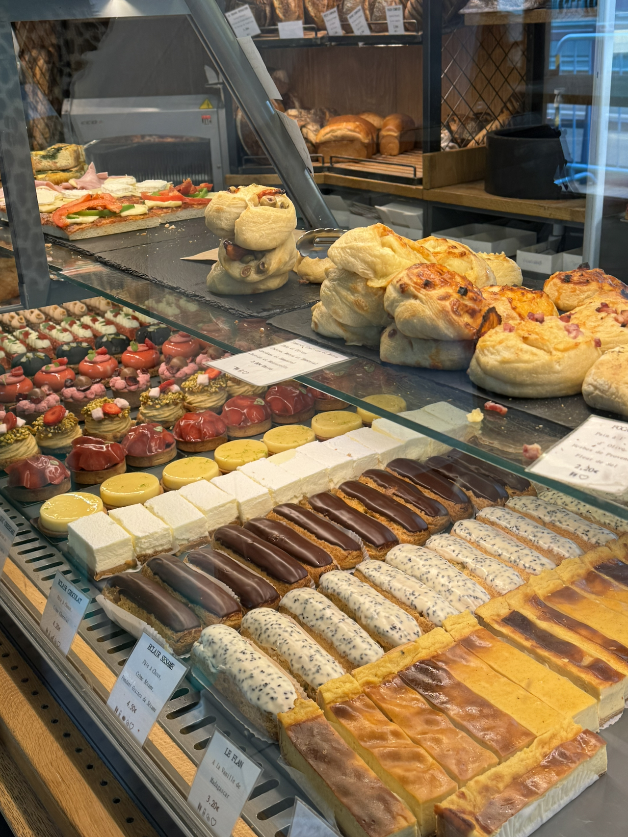 유명한 불랑주리답게 이미 입구 밖까지 줄이 서 있었다. 관광객뿐만 아니라 현지인들도 많이 있어서 기대가 됐다. 내가 갔던 불랑주리의 시그니처는 흑임자 패스츄리와 흑임자 에끌레어였다. 주문 순서가 되었을 때 영어와 불어를 섞어 주문을 했다. “봉쥬~ 원 세사미 페스츄리 엣(그리고) 원 세사미 에끄레허 씰 부 쁠레(영어에서 please 쓰는 거랑 똑같음)”