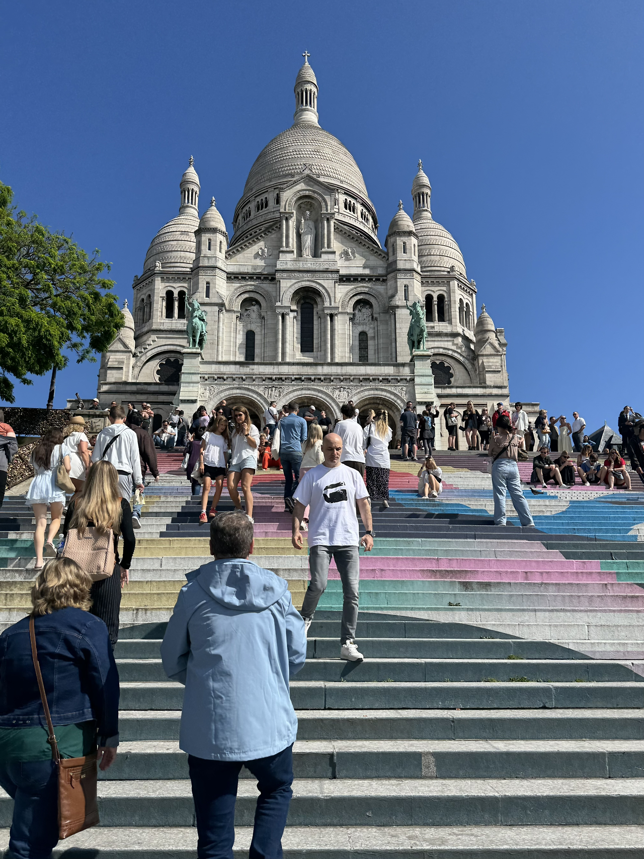 그날은 날씨가 정말 더웠다. 더운 날씨에 언덕을 오르니 힘들었지만 푸릇푸릇한 풍경 덕에 가는 길이 지루하지는 않았다. 몽마르트르 언덕 위에 도착해서 경치를 바라보는데 너무나도 예뻤다. 푸른색의 풀들과 나무들, 파리의 건물들.. 파리가 이렇게 아름다웠다니.. 그저 계단에서 경치를 바라보고만 있는데도 미소가 절로 나왔다. 새벽에는 일출을, 저녁쯤엔 일몰을 이곳에서 보면 참 행복하겠다는 생각이 들었다. 여행의 마지막 날답게 하루 종일 “다음에는.. 꼭.. ”이라는 말을 계속 되뇌었다. 몽마르트르 언덕 계단에 앉으면서도 “다음에는 새벽에 바게트 들고 와서 꼭 일출 구경해야지”라고 다짐했다.