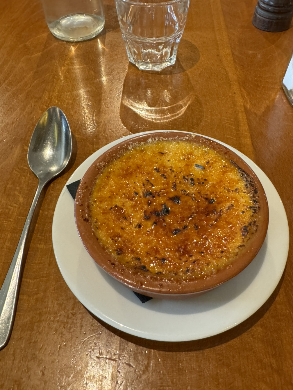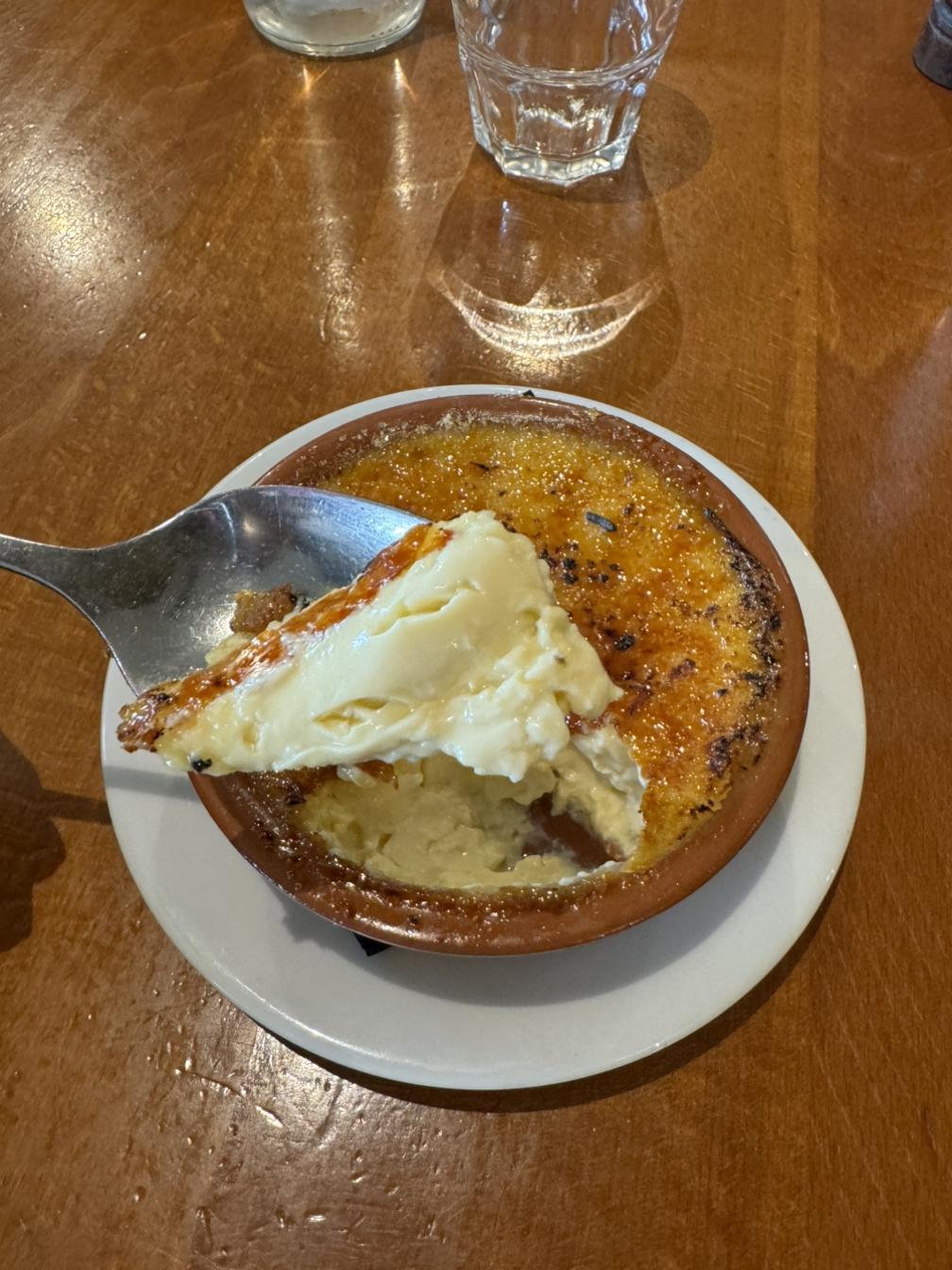 음식을 다 먹은 후, 웨이터 분이 오셔서 디저트를 먹을 거냐고 물으셨다. 디저트는 먹을 생각이 없었기에 괜찮다고 했다가 정확히 3초 만에 크림 브륄레 하나를 달라고 했다. 왠지 여기서 디저트를 안 먹고 나가면 후회할 거 같다는 생각이 들었다.