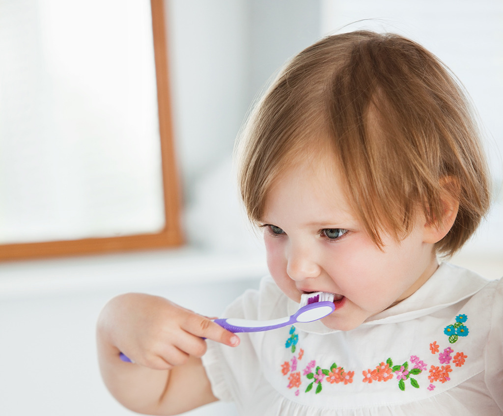 치아가 나기 이전부터 입안을 닦아줘야 양치질에 빨리 적응해요. 생후 3~4개월부터 가제수건에 끓인 물이나 생수를 묻혀 30초 정도 입안을 가볍게 닦거나 두드려주세요.
