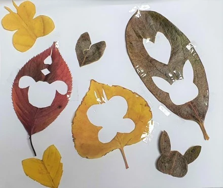 또는, 집에서 스케치북에 아이가 좋아하는 동물을 미리 그려 준비해 보세요. 아이와 함께 주운 잘 마른 낙엽을 준비된 동물 그림 몸통 부분에 풀을 칠하고 붙여요. 아이가 원하는 대로 낙엽을 붙여 동물에게 옷을 입혀주며 역할놀이도 할 수 있어요.