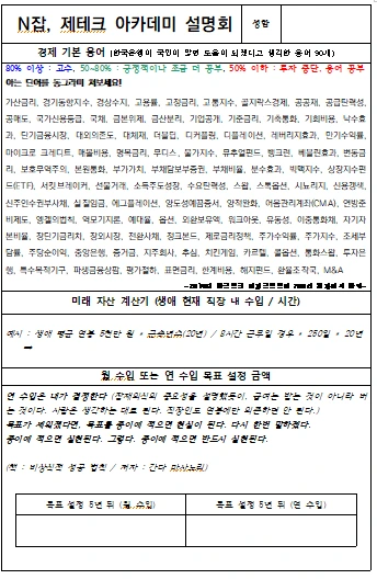 미래자산계산기 직접 계산해 보게 만들기, 연금 보유량 발표, 잠재의식의 중요성 중 급여는 ’ 받는 것‘이 아니라 ’ 버는 것‘ 스스로 결정 (종이에 목표 쓰도록 유도), 동기부여 셋 유튜브 영상 틀기 https://youtu.be/O01 UKy3 UIsA