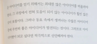 집중력을 발휘할 때는 일단 시작하는 것이 중요하다고 한다. 몸을 움직이면 뇌가 뒤따라 활성화된다. 우리가 아침에 이불속을 나오기 싫음에도 굳이 세수를 하고 이를 닦으면, 뇌가 늦게 움직이는 이치와 같다고 한다. 업무를 할 때도 우선 시작하면, 뇌가 흥분되기 때문에 신경세포가 활성화되고 집중하기 시작한다.