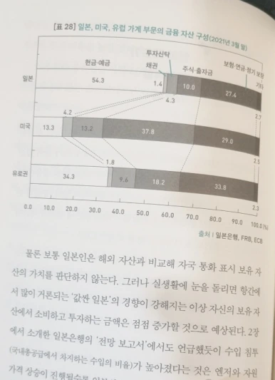 마찬가지로 일본 MZ 개미들은 기성세대와 달리 국채를 사들이거나, 예금하지 않는다. 우리나라 청년들처럼 미장에 투자하는 붐이 일었다고 한다. 저자는 국채매력이 반감된 상황에서 청년들마저 외면하는 현상은 심히 걱정된다고 한다.