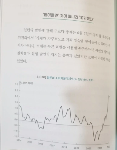 일본 정부는 양적완화와 마이너스 금리로 엔화 약세를 유지했다. 그리고 세계가 긴축기조(코로나19 이후 인플레이션을 잡기 위해)로 돌입하여 금리를 올리자, 상대적으로 더 약세가 됐다. 심각한 엔화 약세는 저자가 말했듯이, 자본의 유출과 수입물품 고가현상으로 내수시장에 강한 충격이 오지 않을까 걱정됐다. 그렇다고 금리를 올리자니, 엔고현상으로 인한 잃어버린 20년이 재현될까 두려웠다.