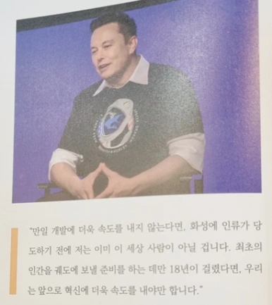 이 책은 200개의 미공개 사진과 함께 스페이스 X의 핵심 로켓을 분석하여 알려준다. 그리고 수많은 실패 속에서 머스크의 끝없는 도전 정신도 보여준다.
