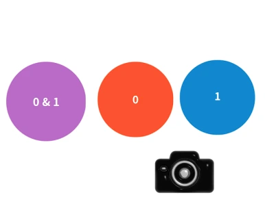 중첩은 0과 1이 동시에 존재한다는 개념이다. 사진을 촬영할 때(관측)마다 0 또는 1로만 결정된다는 의미로, 아래 그림과 관측되는 순간, 빨강 또는 파랑, 0 또는 1로만 나타난다. 0~1사이 또는 보라색의 값을 가질 수 없다.