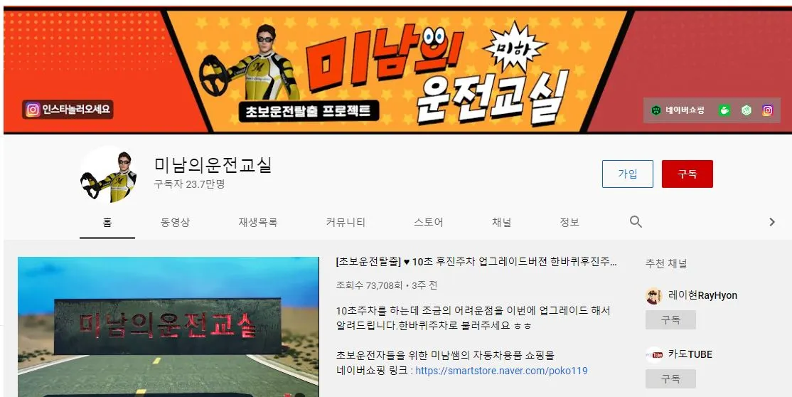 운전에 대한 두려움으로 운전을 공부하듯이 배웠다. 내가 공부한 방법은 유튜브와 게임(?)이다. 먼저, 나의 스승은 감히 유튜브라 할 수 있다. 유튜브에는 나와 같은 초보 운전자를 위한 영상이 많이 있었다. 내가 많은 도움을 받은 유튜브는 '미남의 운전교실'이다.