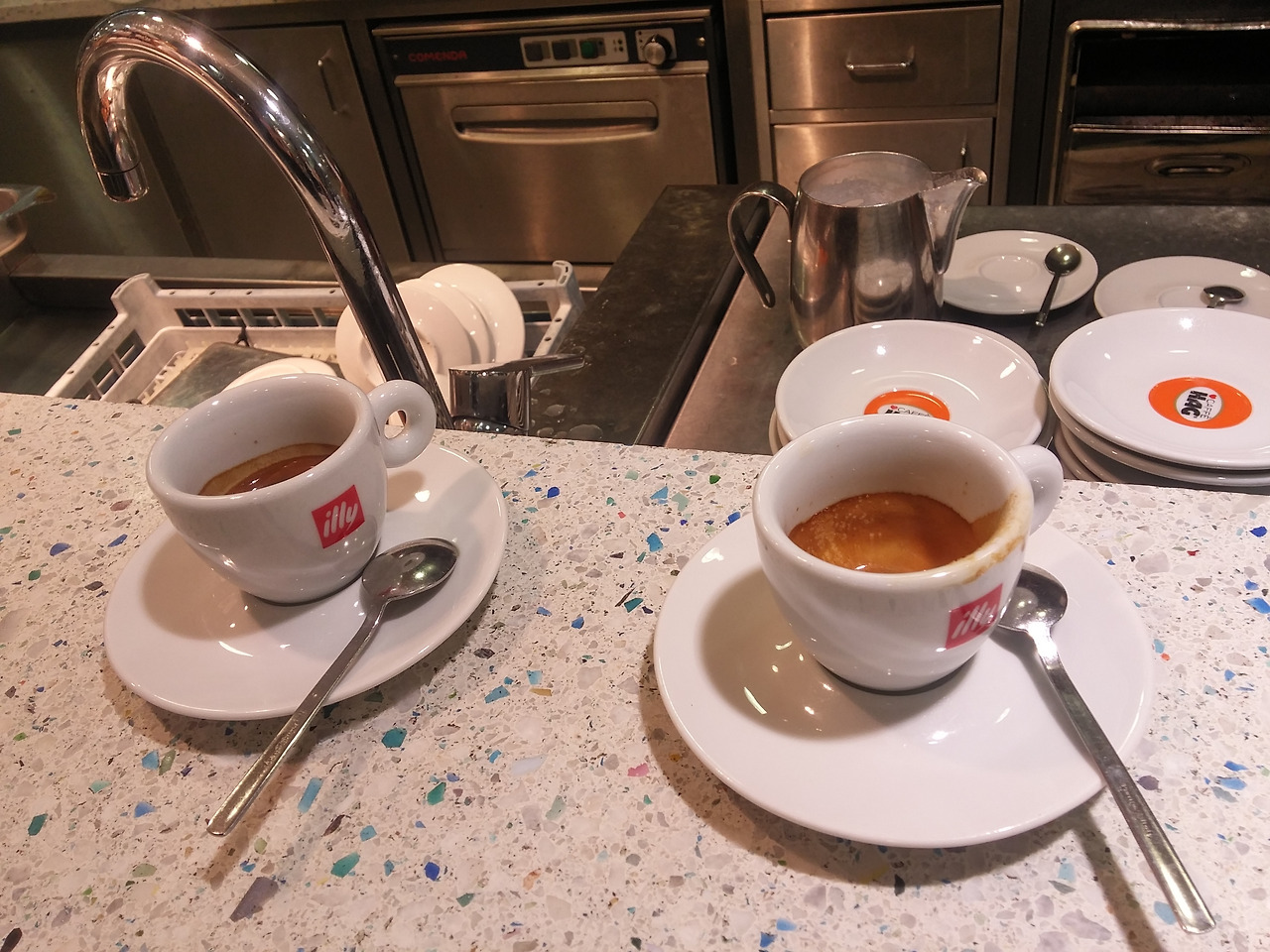 기억에 남는 것은 유럽 쪽은 공공화장실 개념이 없어서 유료로 사용하거나 카페 화장실을 이용해야 한다는 점이다. 카페 화장실을 이용하려면 커피 한 잔을 마셔야 하는데 1~2천 원 정도만 내면 에스프레소를 마실 수 있다. 에스프레소를 마시는 방법은 설탕을 한스푼 넣고 섞지 않은 채 마시는 것이다. 그러면 쌉싸름한 에스프레소 끝에 달달함으로 마무리 된다.