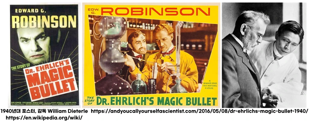 만약 약학의 ‘아버지’를 한 명 꼽아야 한다면, "'미생물을 쏘는 마법의 탄환'이라는 자신만의 철학"을 실천한 폴 에를리히야말로 가장 적합한 인물일 것입니다. 이 개념은 현대 약학에서 말하는 '표적 치료제'의 시초로 평가받습니다. 그의 삶과 연구는 1940년 할리우드 영화 'The Magic Bullet'으로도 제작되며, 과학자의 집념을 알리는 계기가 됩니다. 그는 단지 병을 고치는 것에 그치지 않고, 더 안전하고 정밀한 약물로의 진보를 추구했습니다.