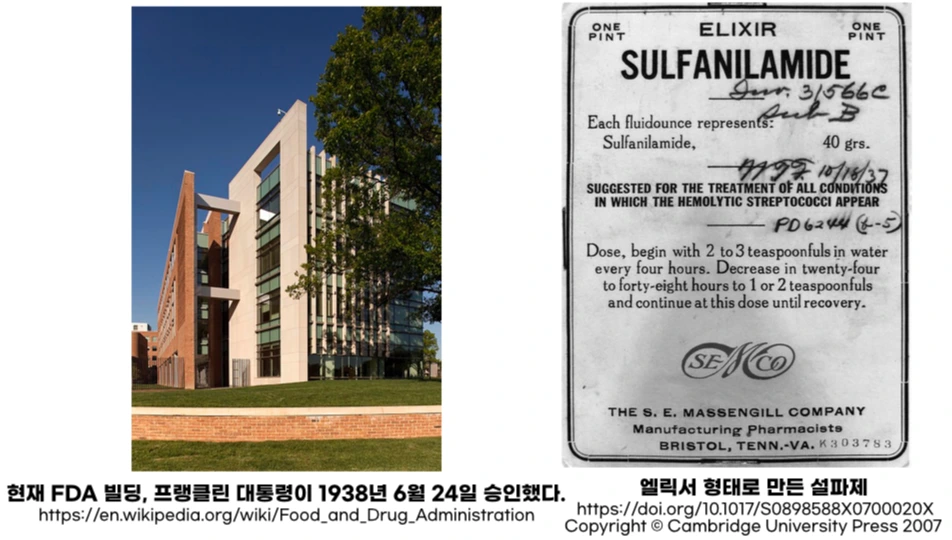 이 사건은 미국 사회에 큰 충격을 주었고, 마침내 1938년, ‘식품·의약품·화장품법(FD&C Act)’이 제정됩니다. 이 법은 의약품을 판매하기 전, 안전성을 반드시 입증해야 한다는 최초의 규제였고, 훗날 FDA(미국 식품의약국)의 탄생으로 이어지는 결정적인 계기가 됩니다.