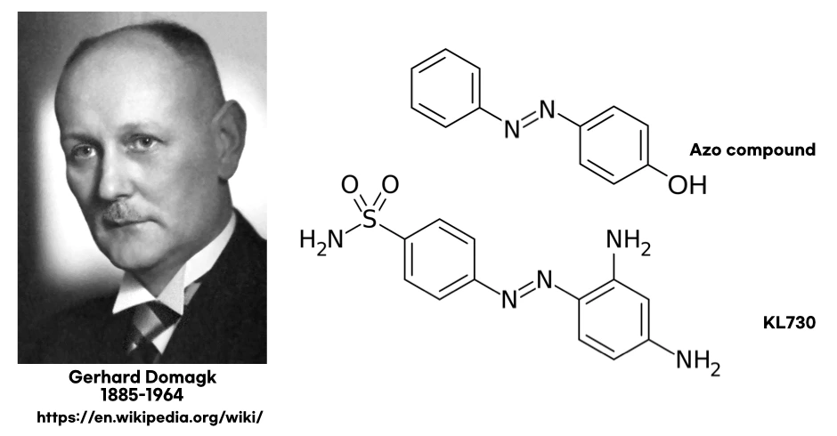 전쟁이 끝난 후, 도마크는 뮌스터대학에서 의학을 전공한 뒤, 1927년 바이엘(Bayer)에 입사합니다. 당시 바이엘은 거대 화학기업 IG 파르벤(IG Farben) 산하에 있었고, 수천 가지 염료 화합물을 보유하고 있었습니다. 도마크는 이 방대한 염료 화합물들을 활용해, 항균 효과가 있는 염료를 찾는 연구에 착수하게 됩니다.