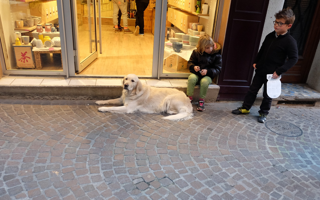 소년은 쇼윈도에 눈을 떼지 못합니다