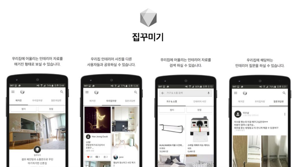 셀프 인테리어족, 싱글 자취족들을 위해 런칭된 집꾸미기 서비스는 런칭 2년만에 누적 500억 매출을 돌파했다. 싱글족들의 방 인테리어 이미지 및 제품 정보 공유, 잘된 인테리어 매거진 추천과 큐레이팅을 통해 가구 구매까지 쉽게 연결시켰다는 점이 서비스 핵심 포인트이다. 비록 10평의 자취방이지만 이쁜 가구 구매를 위해 아낌없이 소비한다는 점, 고급진 매거진 형태의 컨텐츠 서비스가 있어빌리티를 충족한다는 점, 종합적 가심비를 저격했다는 점들이 M세대 1번의 요소를 모두 충족시켰다.