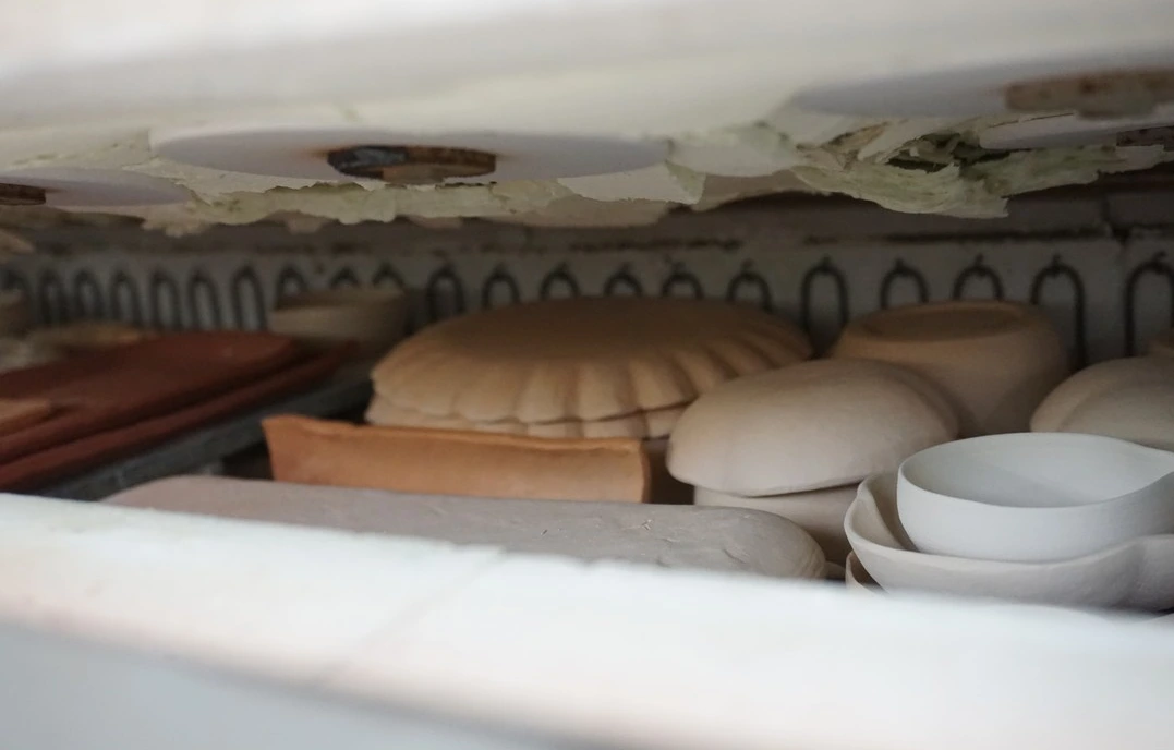 800도 가마에서 초벌구이를 한 후 100도 가까이 온도를 조금씩 천천히 가마 안에서 식혀가며 기다린다.