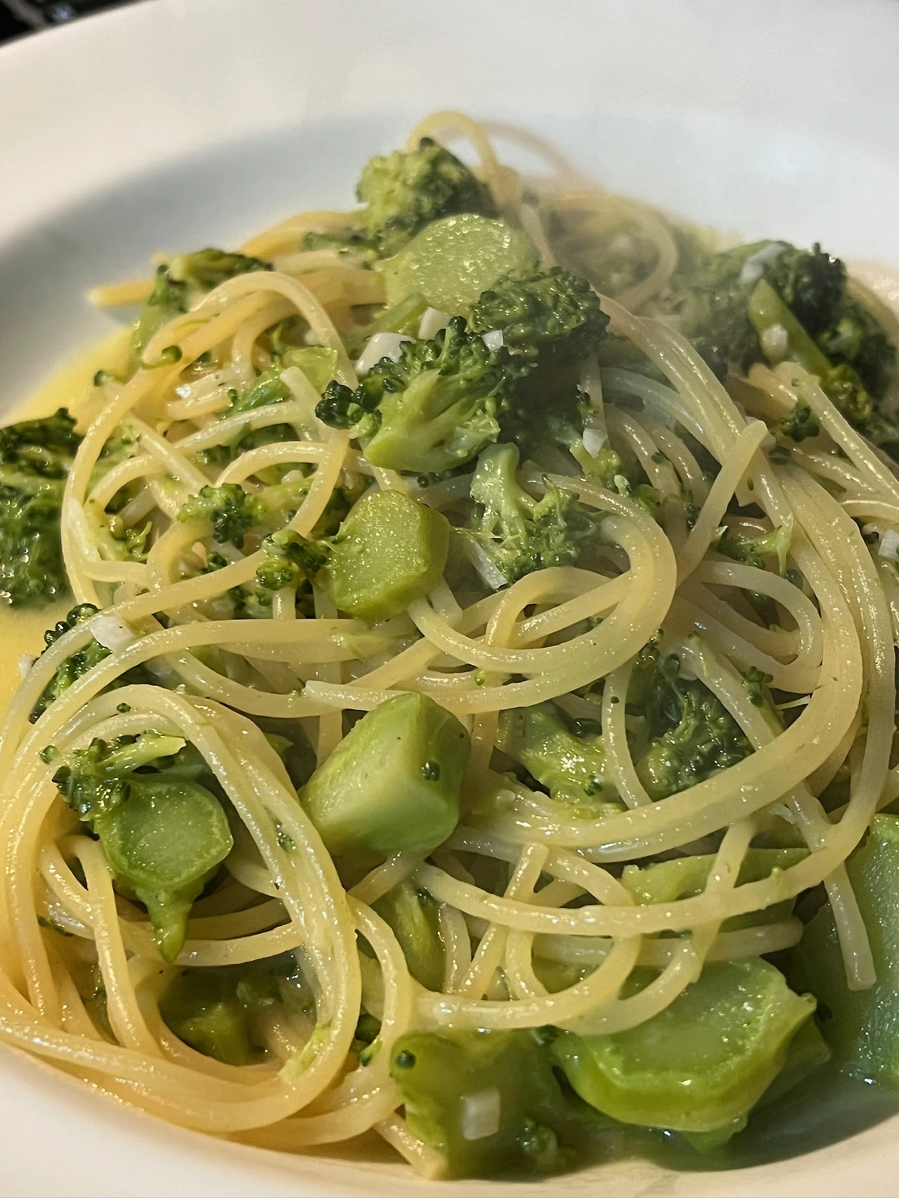브로콜리만 있으면 근사한 파스타가 된다. 이탈리아 토리노 지역을 여행할 때 호스텔 주인 분이 해주셨던 음식을 떠올리며 만들었다. 브로콜리를 훨씬 잘게 다져서 치즈와 함께 크리미하게 소스를 만들어서 해도 되지만 나는 치즈를 쓰지 않고 오로지 브로콜리만 가지고 만들었다.