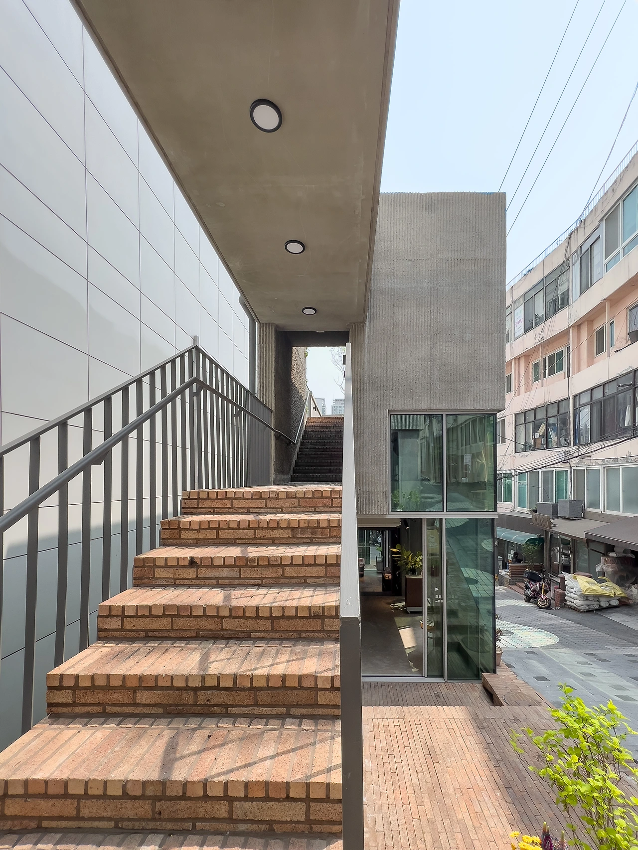 새롭게 탄생한 중림창고는 마치 원래 있던 건물처럼 주변과 잘 어울린다. 성요셉 아파트와 동일하게 가파른 언덕 지형에 순응하면서도 건물을 작은 크기로 분절하여 곳곳에 열린 공간을 만들었다. 건물 사이는 단차를 주어 지형의 단점을 극복했고 골목길과 면한 1층은 슬라이딩 도어를 설치하여 개방감을 확보했다. 덕분에 좁고 작은 공간임에도 내부는 넓게 느껴진다. 어떤 곳은 층고가 높고 또 어떤 곳은 층고가 낮은 동시에 내리막길에 위치하여, 같은 2층임에도 다른 공간감과 풍경을 느끼고 볼 수 있다.