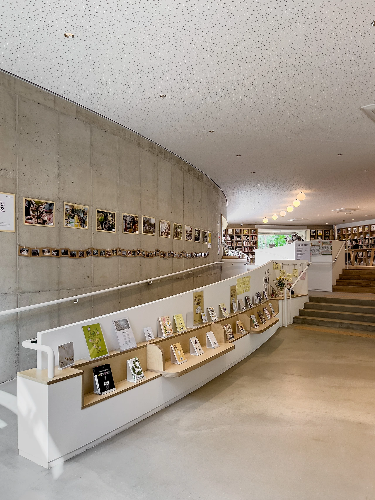 도서관 곳곳에 걸린 사진을 보면 이곳은 동네 주민들이 모여 소통하는 마을 회관이자, 사랑방으로, 때론 강연장으로 공간이 유동적으로 변하고 있었다. 그래서 이곳을 특정 기능만 하는 ‘도서관’이 아닌, ‘쉼터’로 이름 지은 이유이기도 하겠다. 누구나 와서 쉬었다 갈 수 있는 장소로, 무더운 여름엔 더위를 피하고, 매서운 겨울엔 추위를 피할 수 있는 장소에 모여, 오며 가며 마주치는 주민들과 커뮤니티를 형성할 수 있기 때문이다.