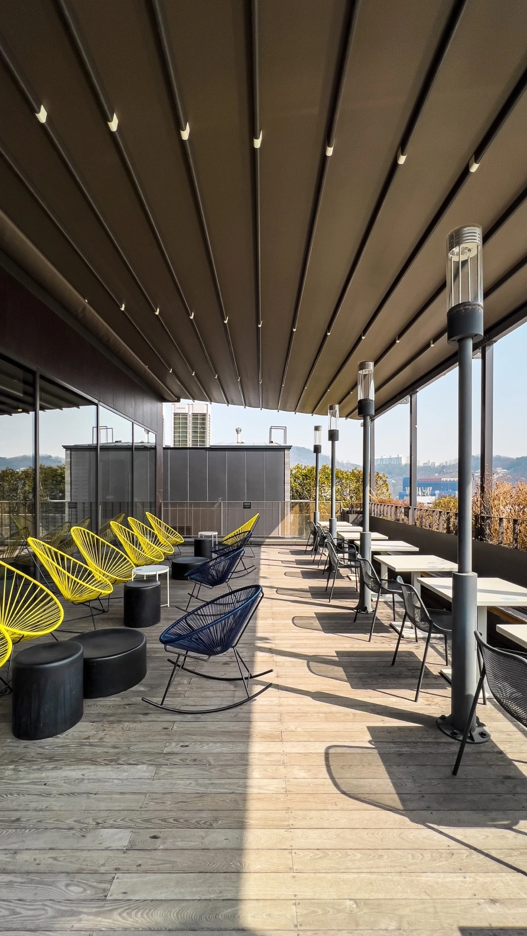 특히나 1층을 열어두어 야외테라스로 공간이 확장되니, 이곳이 곧 도심 속 쉼터요, 이태원 사람들을 모을 허브인 셈이다. 덕분에 어두운색을 가진 외관이 거부감보다는 세련됨으로 다가와 모호한 경계가 진입장벽을 낮추었다. 이곳은 '맥심 플랜트'다.