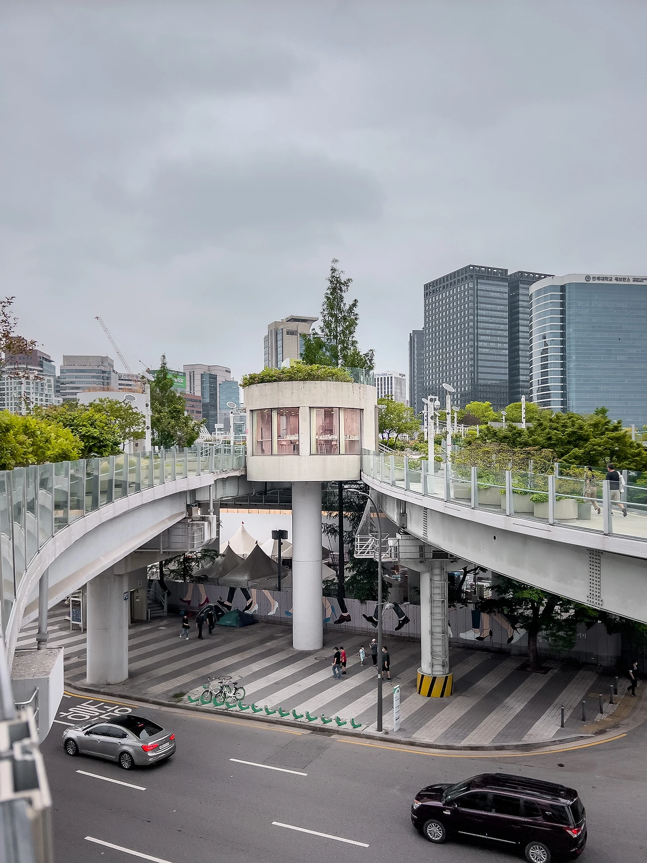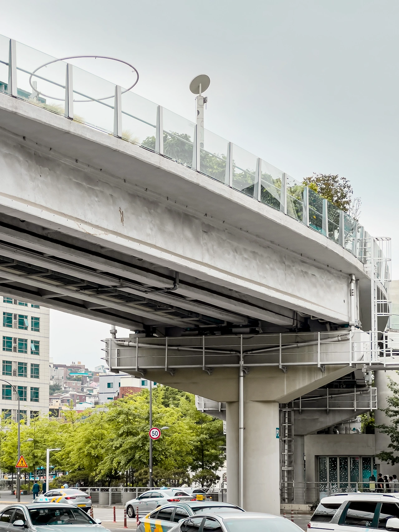 그렇게 나누어진 두 지역을 다시 잇기 위해 서울시는 고가도로를 설치하여 지역 간의 단절을 해결하려 했다. 당연, 굵은 선을 넘기 위해 그려진 또 다른 선은 없는 것보단 나았지만, 자동차 전용 도로로 그어진 선은 좋은 해결책이 아니었다.