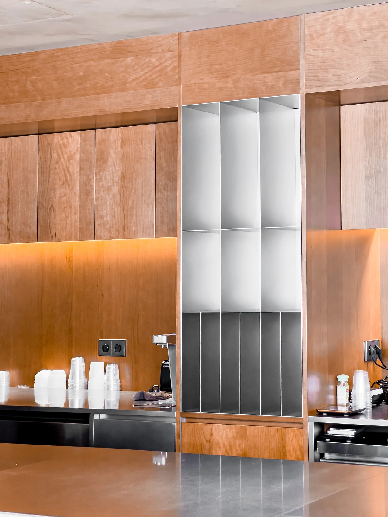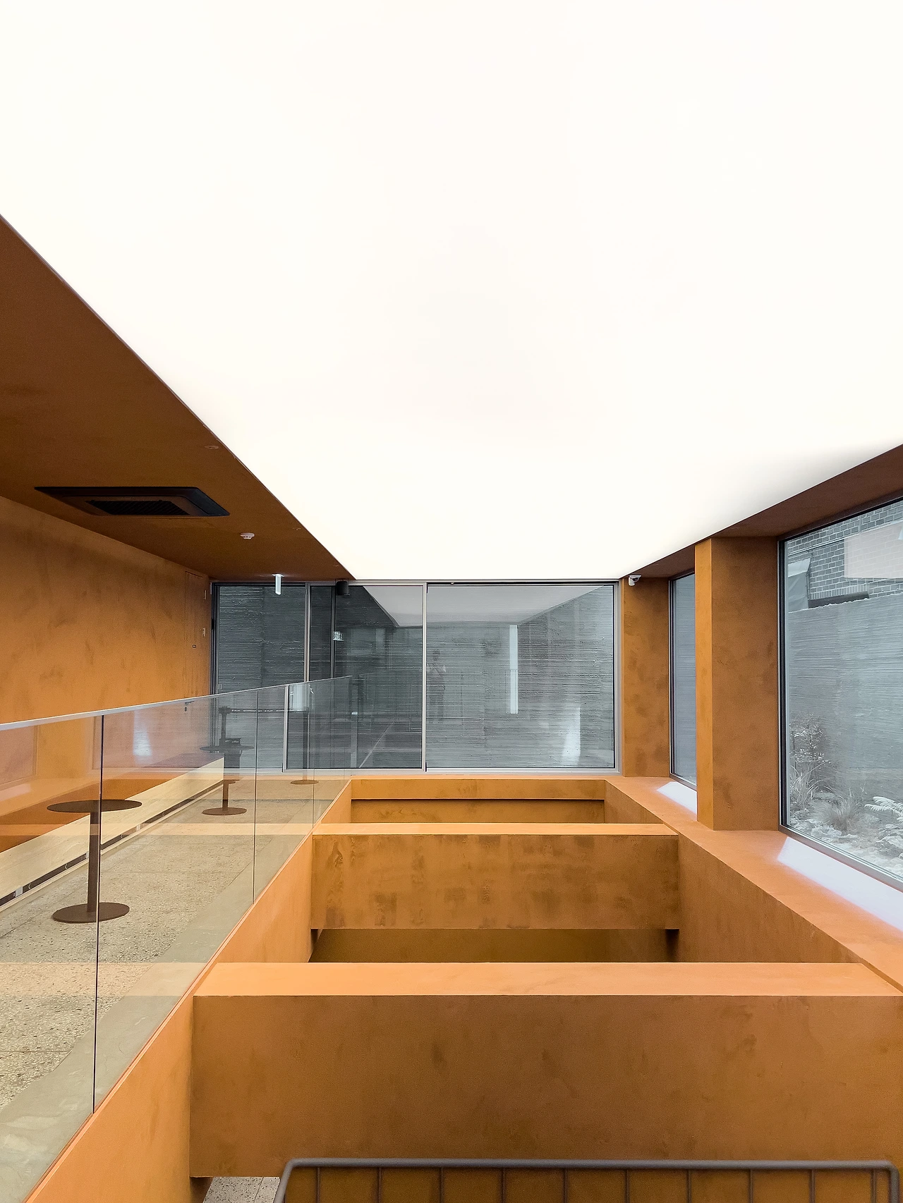이곳의 지하는 일부분 천장이 뚫려있어 1층과 시각적으로 연결된다. 덕분에 밝아진 지하층과 그렇지 못한 어두운 공간의 대비가 극명해져, 같은 층에서 서로 다른 위계를 경험할 수 있다.
