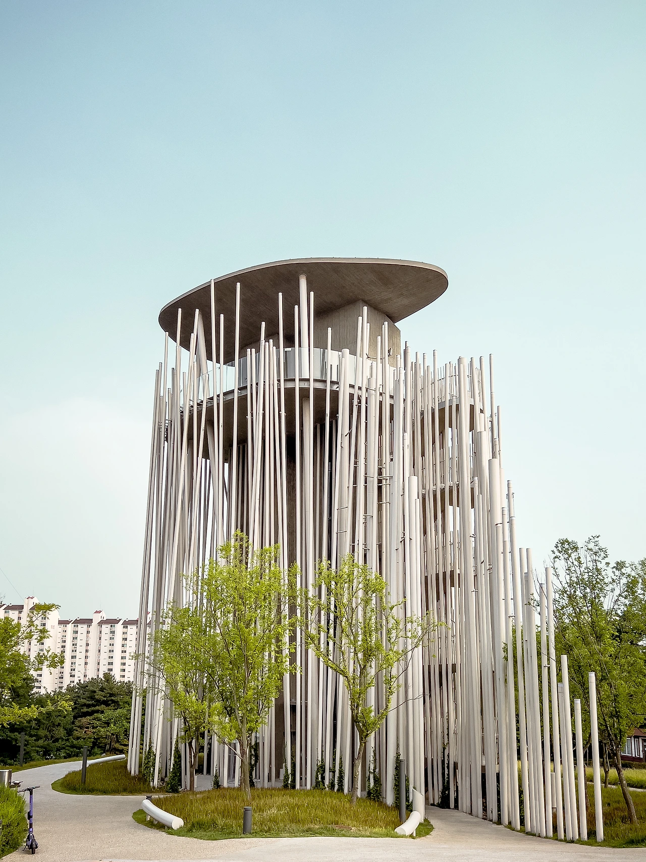 우리는 건물의 퇴화를 부정적으로 보고, 시간의 흐름을 역행하려 온 힘을 쏟아붓지만, 이곳은 되려 그 흐름을 덤덤하게 받아들이려 한다. 엘리베이터와 계단, 무작위로 꽂힌 막대기가 전부인 이곳은 전망대다. 특별한 시설 없이 언덕 위에 홀로 서있기에, 비를 잘 맞고, 빛을 온몸으로 받으며, 변덕스러운 날씨를 그대로 겪는다. 그래서 이 전망대는 그 상처가 더 깊게 새겨진다.