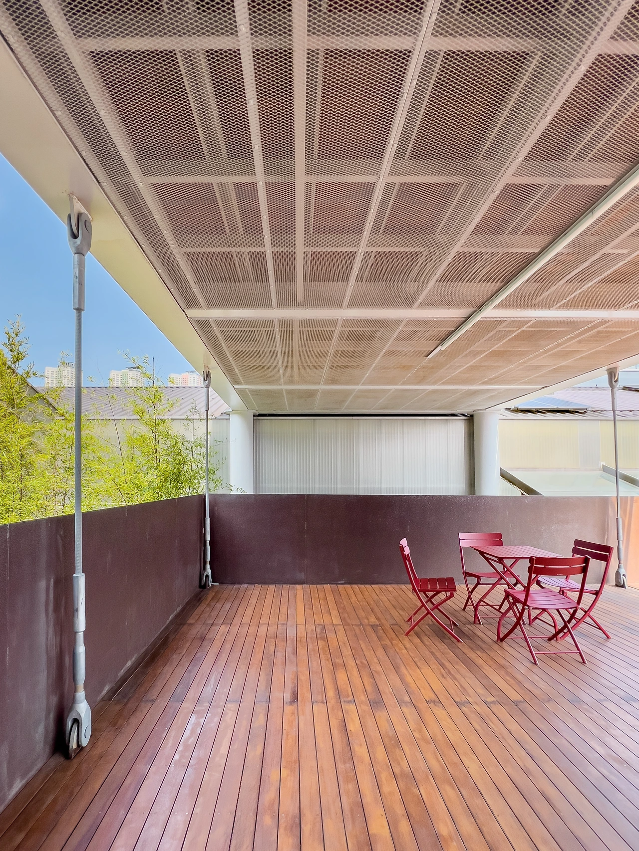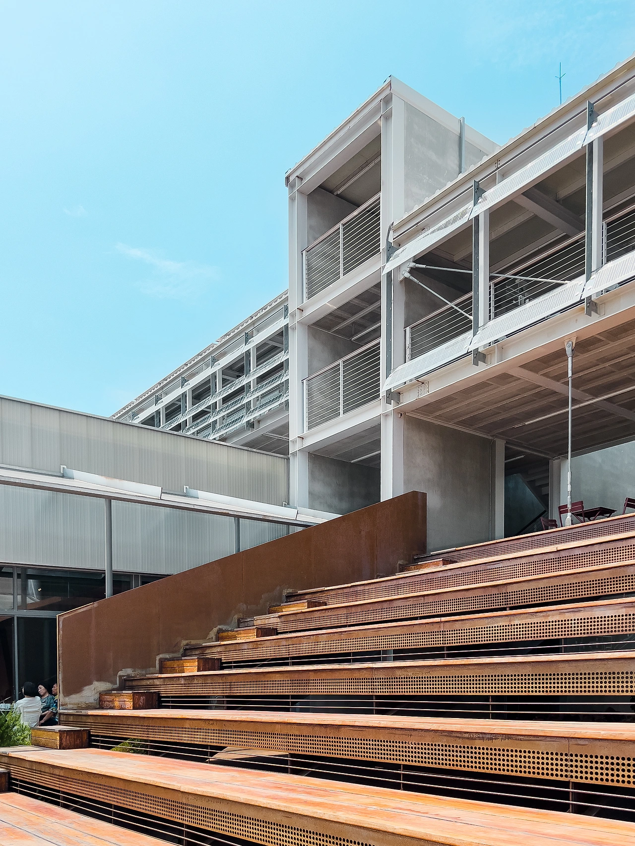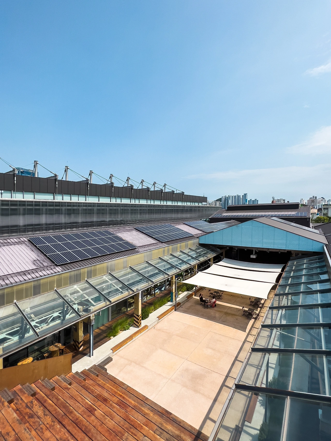 기존 건물 형태와 골조는 최대한 유지한 채, 필요한 부분만 추가했다. 낡고 허물어진 건물의 외관은 일부분 손을 보고 정문은 부산에 걸맞은 색으로 칠해진 익스펜디드 메탈(expanded metal)을 달아, 치고 올라오는 신축 건물 못지 않는 깔끔하고 세련됨을 보여준다.