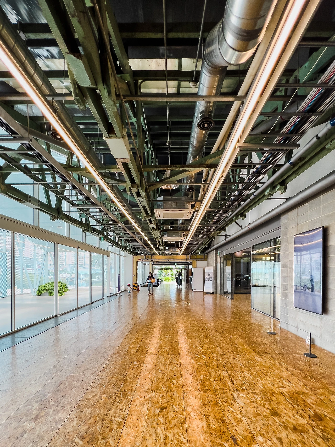 대형크레인이 있던 자리는 지혜의 북 타워가 세워져 공간 속 공간이 만들어내는 다양한 공간감을 느낄 수 있다. 공장의 천장 일부분은 뜯어내고 중정을 만들어 사람들이 모일 수 있는 장을 만들었으며, 그 과정에서 나온 자재들은 벤치와 표지판으로 재활용되었다.