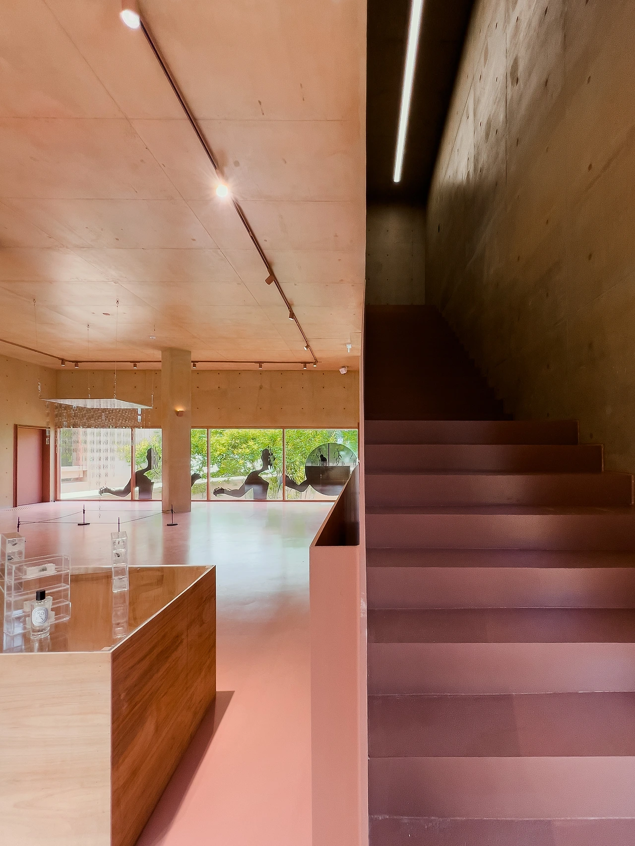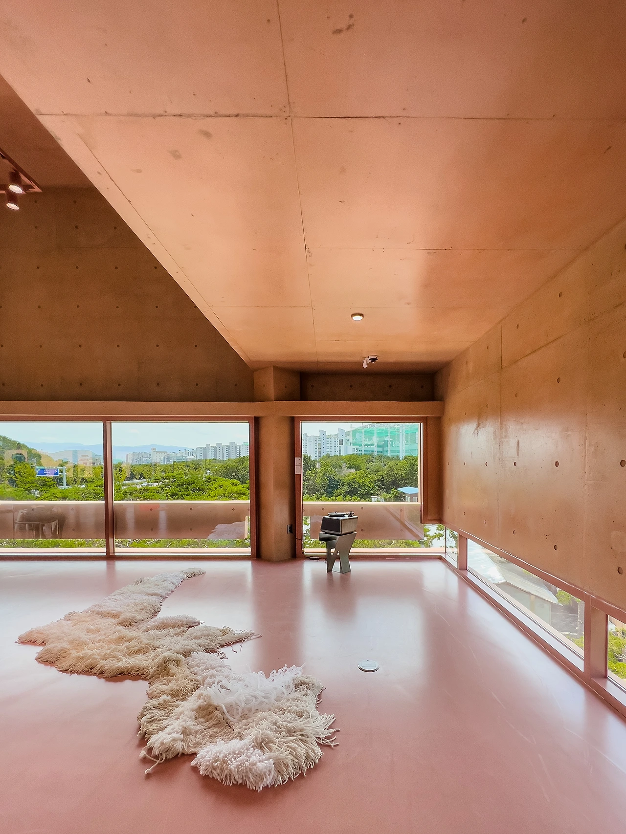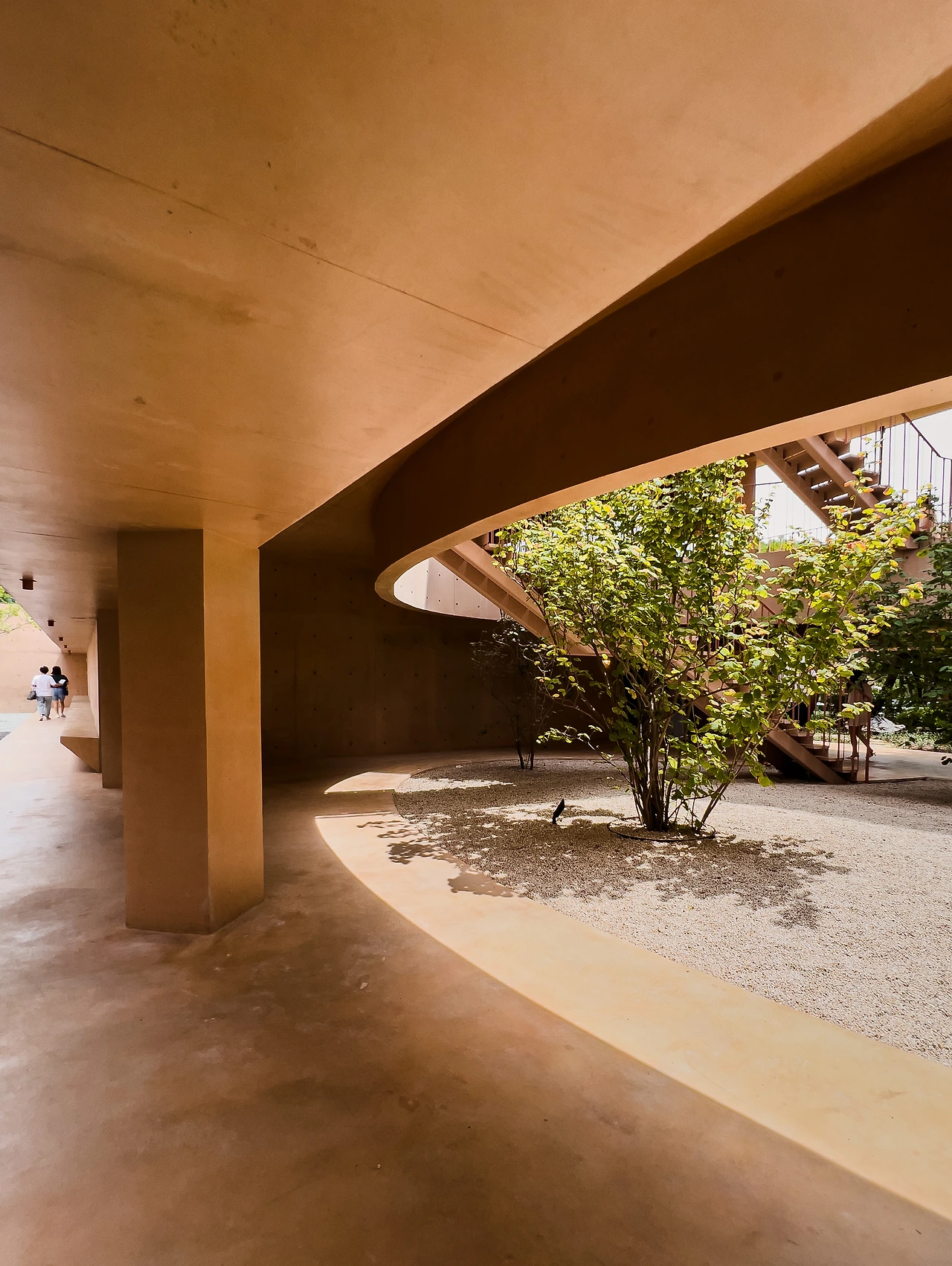 멀리서부터 보이는 인디 핑크색으로 무장한 건물이 산을 배경으로 평지 위에 앉혀 있다. 우둑하니 서 있어 암석 같기도 한 건물의 안은 비어있다. 서양에서의 비움은 아무것도 없는 ‘무’의 상태를 일컫지만, 동양에서의 비움은 무수히 많은 것을 수용할 수 있는 ‘유’의 공간으로 보았다. 그렇기에 비움이 많은 이곳은 다양한 식물을 담고 다양한 행사를 담아 사람들이 유기적으로 활동할 수 있는 복합문화공간으로 우리에게 다가온다.