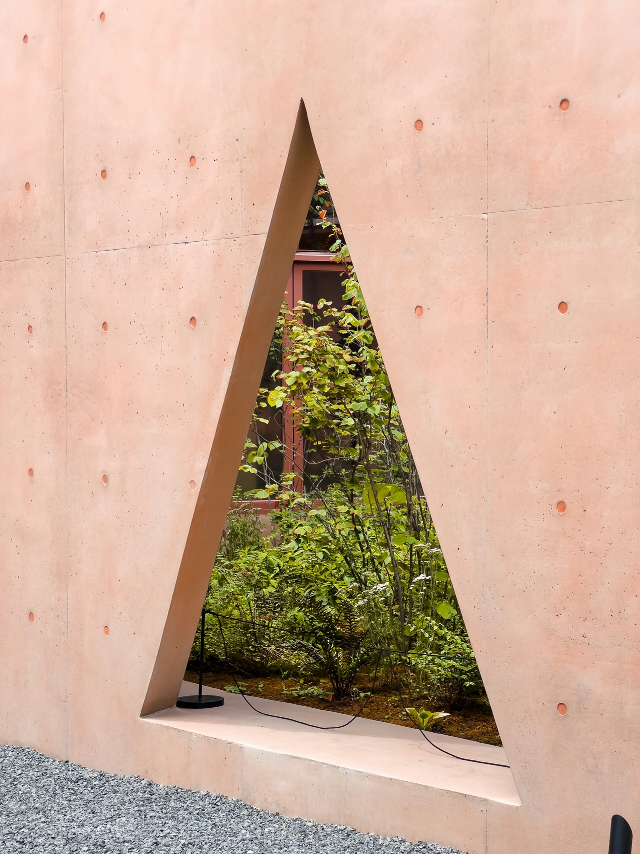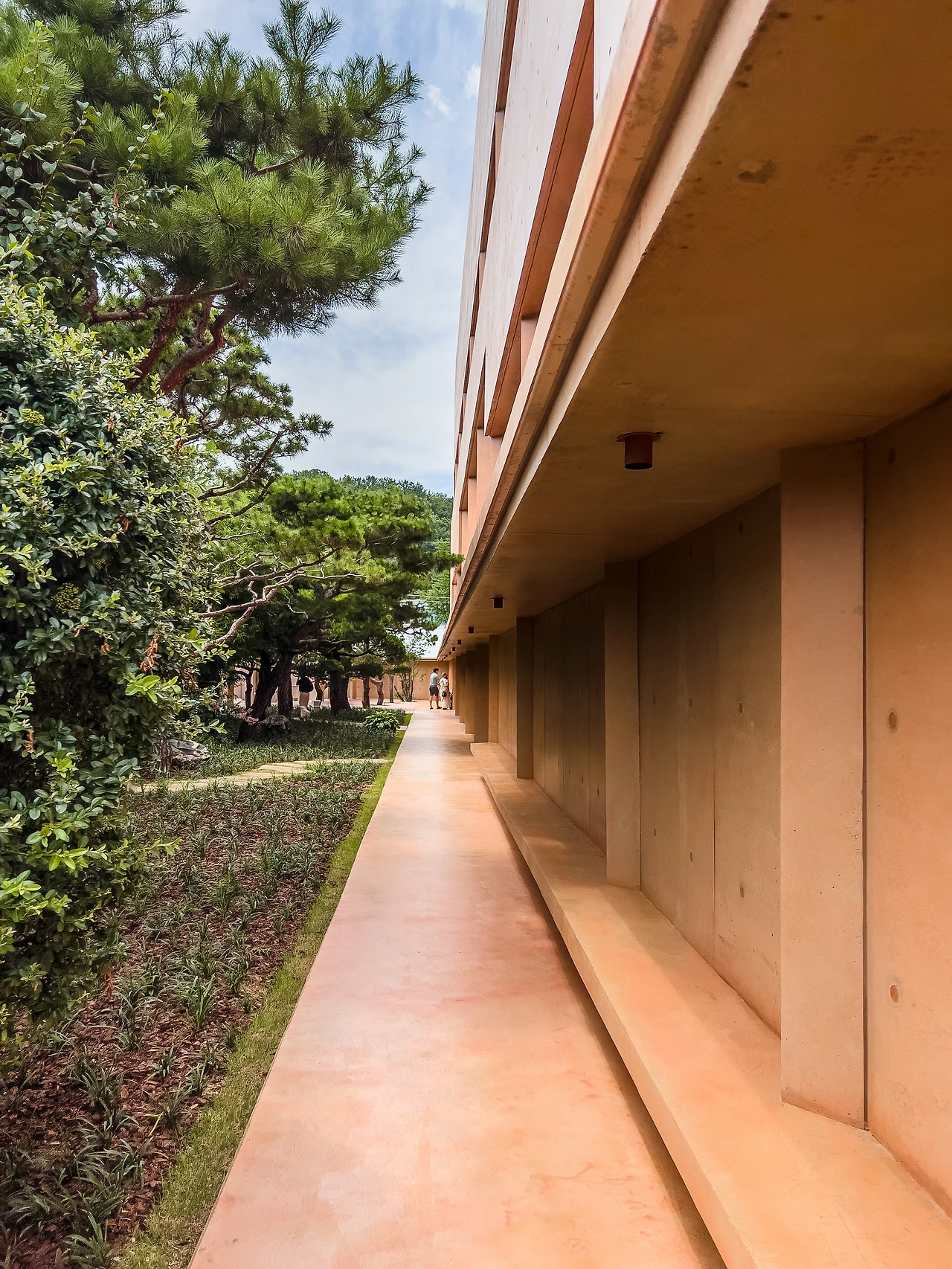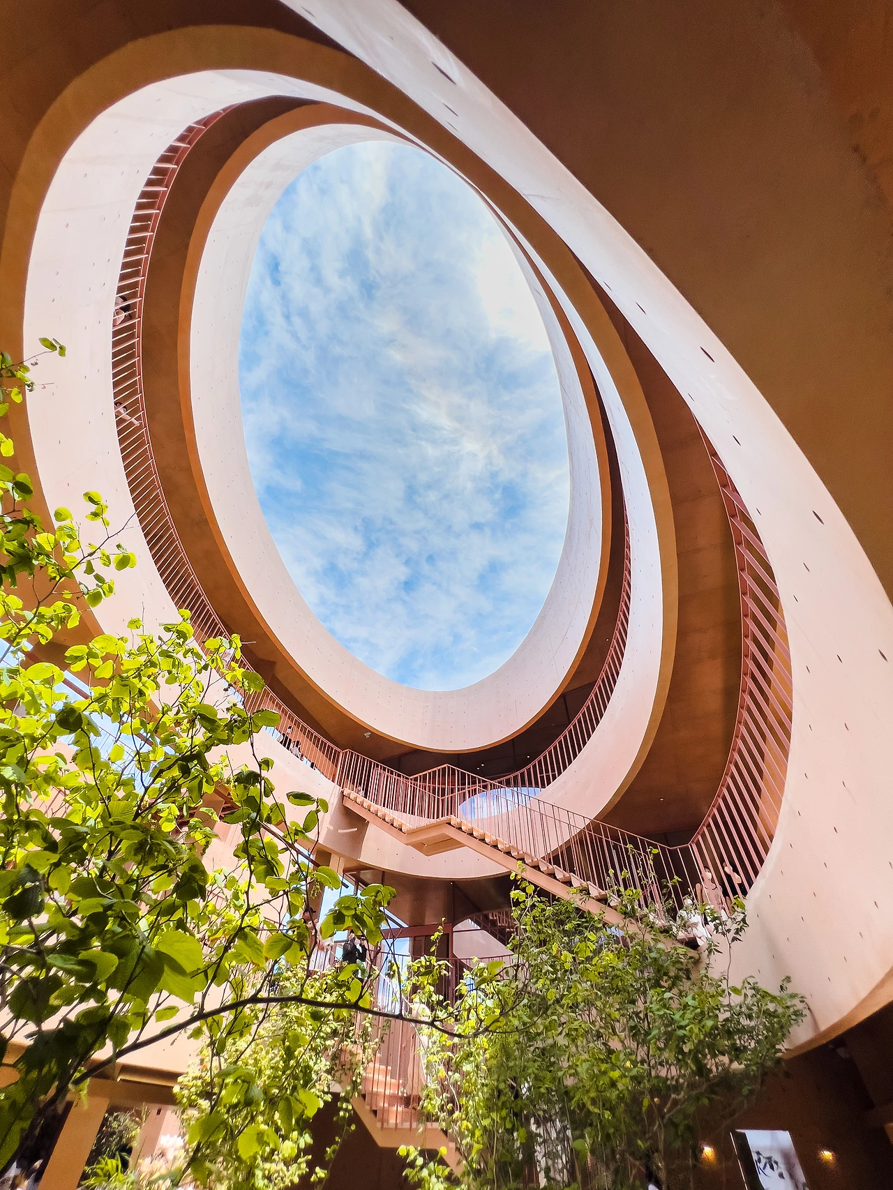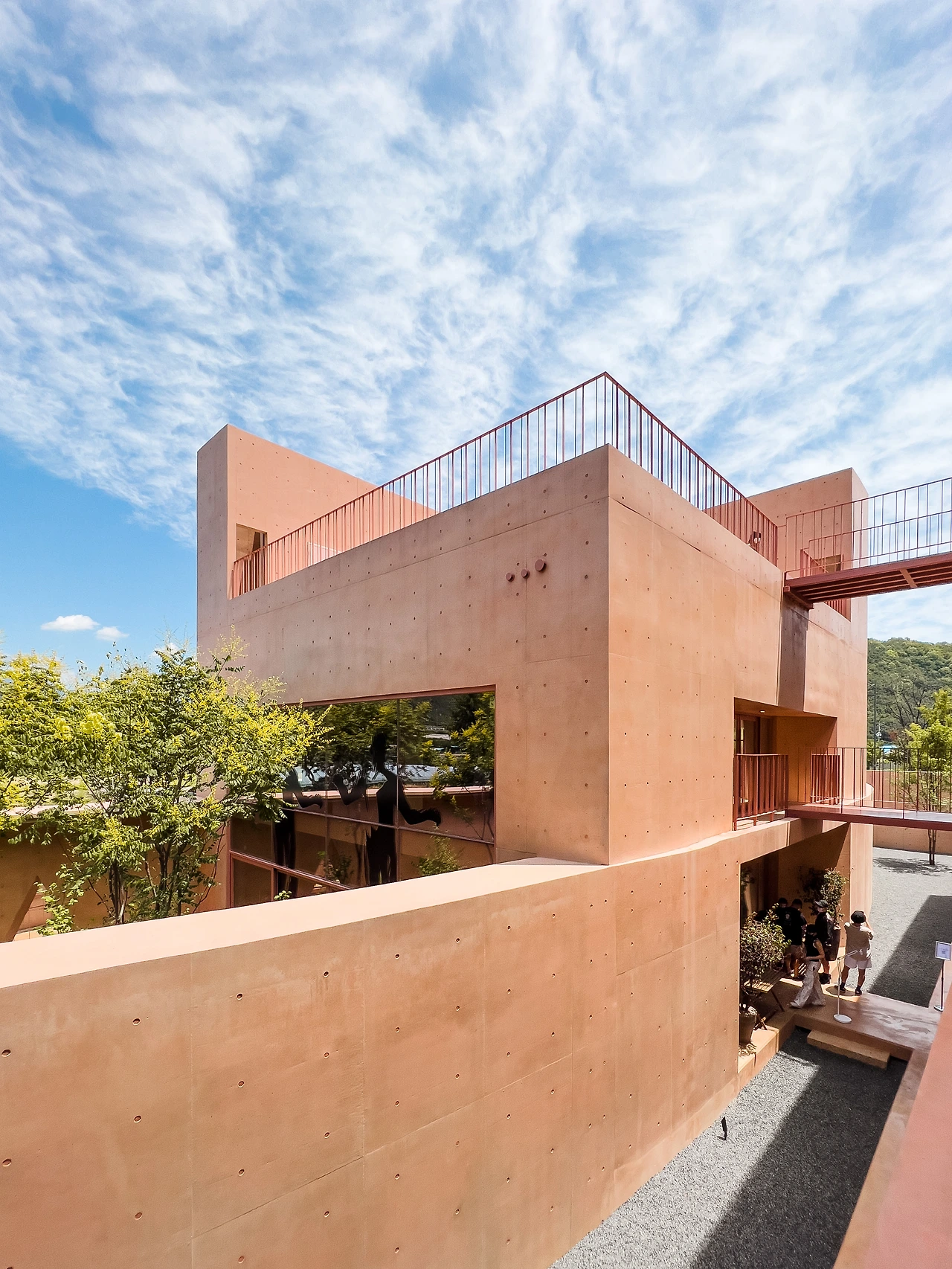 멀리서부터 보이는 인디 핑크색으로 무장한 건물이 산을 배경으로 평지 위에 앉혀 있다. 우둑하니 서 있어 암석 같기도 한 건물의 안은 비어있다. 서양에서의 비움은 아무것도 없는 ‘무’의 상태를 일컫지만, 동양에서의 비움은 무수히 많은 것을 수용할 수 있는 ‘유’의 공간으로 보았다. 그렇기에 비움이 많은 이곳은 다양한 식물을 담고 다양한 행사를 담아 사람들이 유기적으로 활동할 수 있는 복합문화공간으로 우리에게 다가온다.