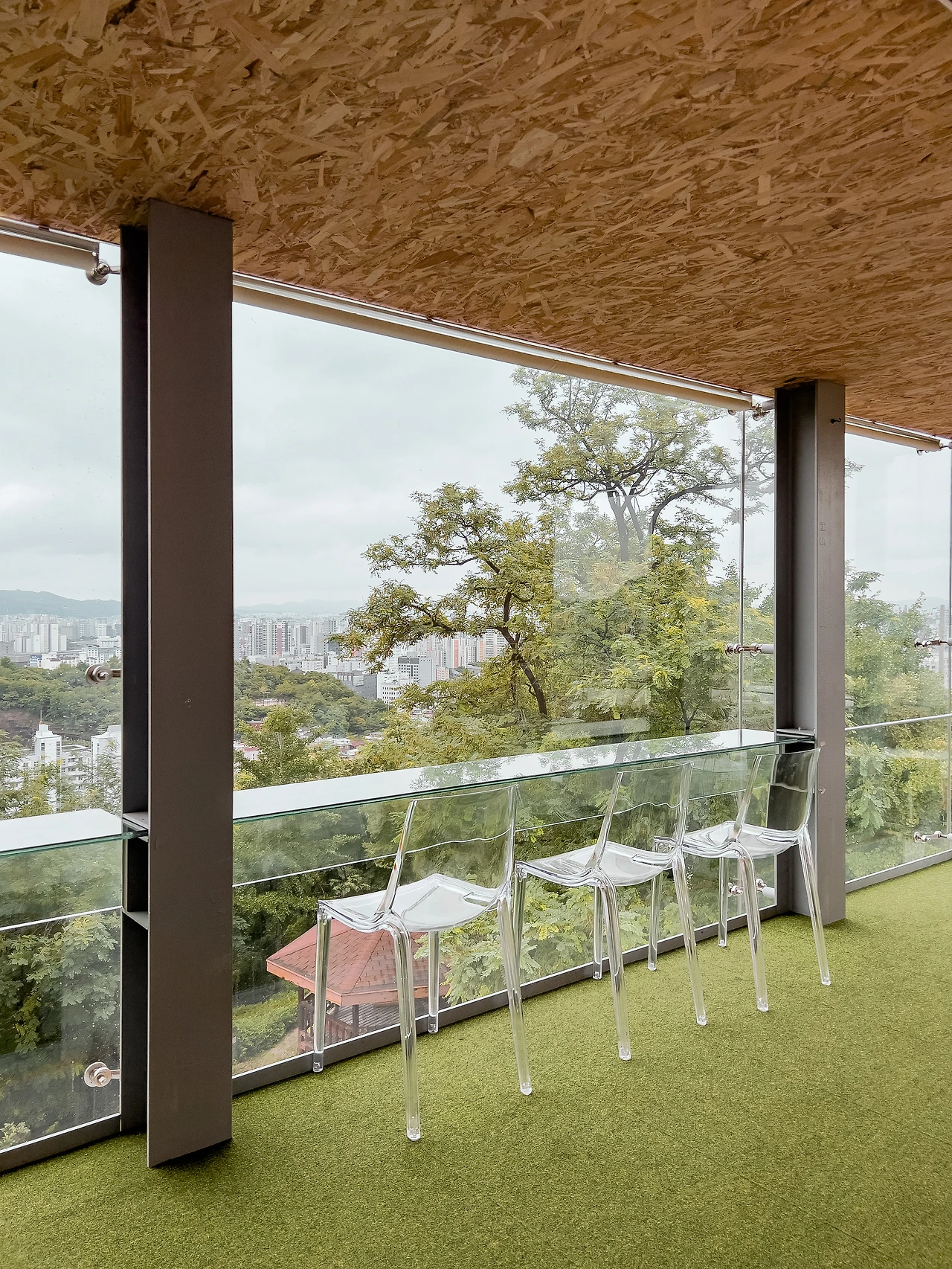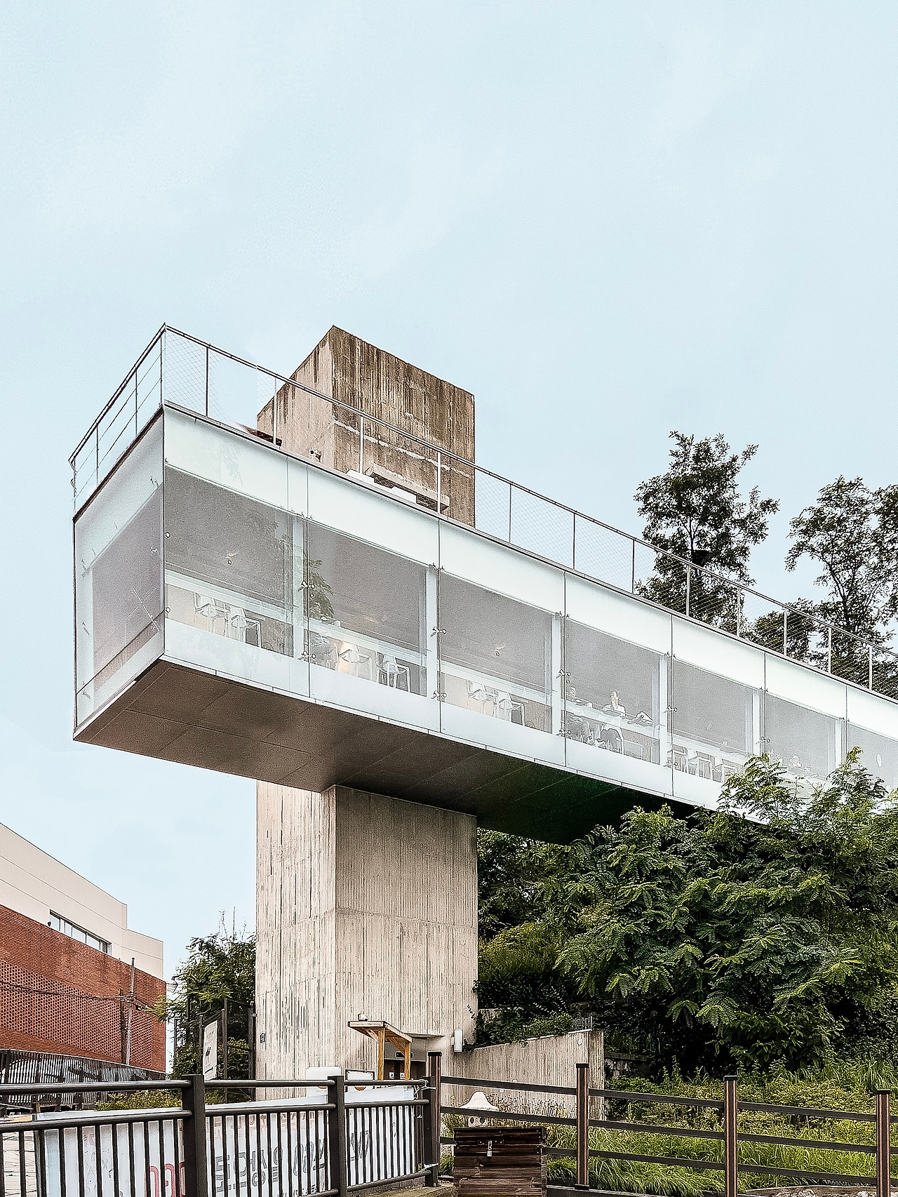 전망대는 간결하지만 인상 깊다. 수직선은 엘리베이터, 수평선은 카페와 전망대로 사용되어 건물의 기능은 단순하다. 하지만 두 선이 결합하여 만들어낸 형태와 비로소 볼 수 있는 동네의 경치는 절대 단순하지 않다. 십자가 형태를 가진 전망대는 기둥 하나 없는 캔틸레버 구조를 가진다. 덕분에 관람객은 걸리는 선 하나 없이 창신동 일대를 내려다 볼 수 있으며, 옥상에서 도로 쪽으로 걸어가면 몸이 떠 있는 듯한 느낌을 받는다.