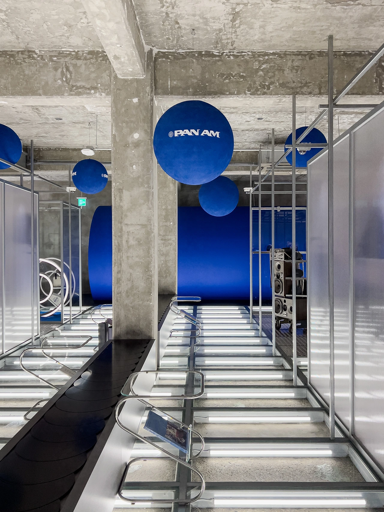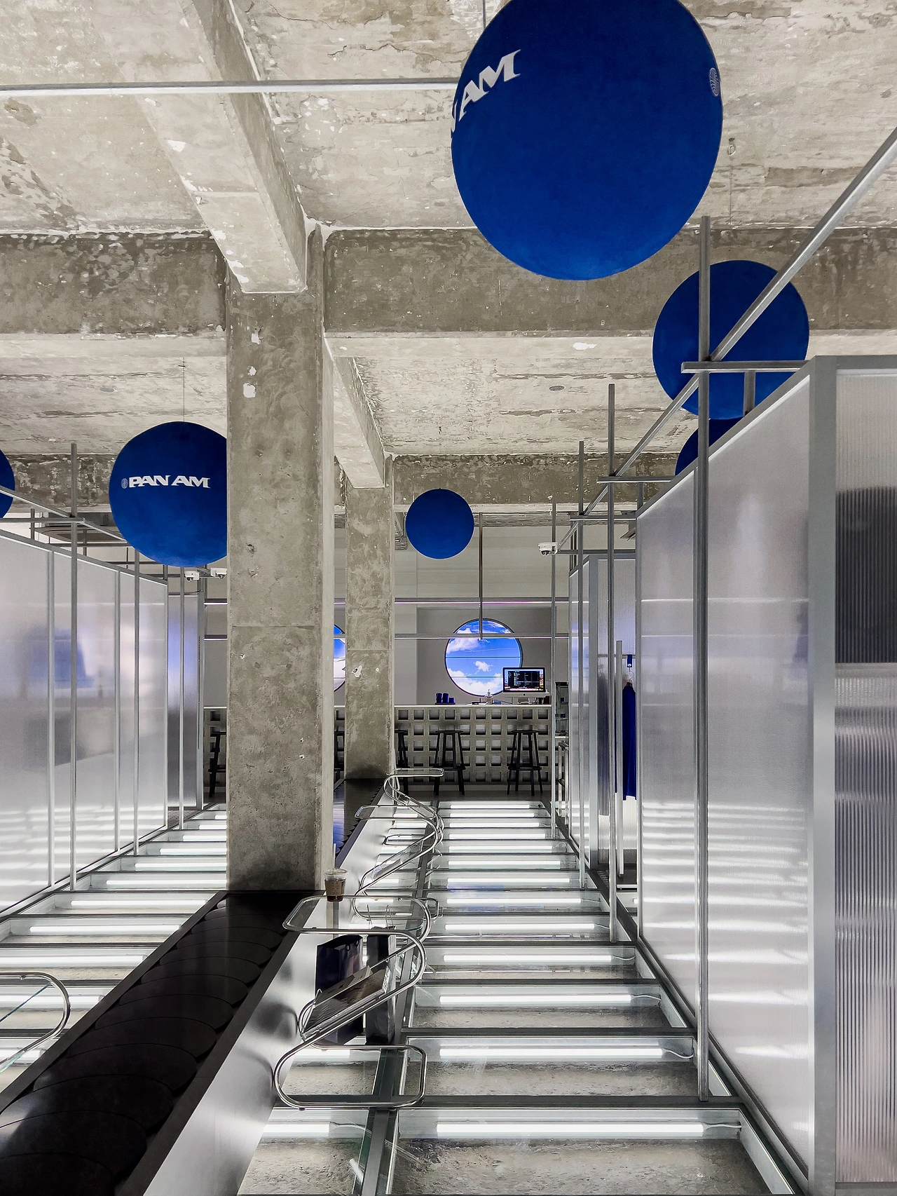 ‘저게 뭐야?’라며 부정적인 반응보다 긍정적인 호기심으로 그 앞을 서성이는 사람들은 궁금증을 이겨내지 못하고 안으로 들어간다. 천장보다 바닥에 힘을 준 이곳은 1층임에도 동굴을 탐험하는 듯하다. 팬암이 세계최초로 해외여행의 문을 열어, 세계적인 명성을 가지게 된 ‘팬 아메리칸 월드 항공사(Pan American World Airways)’였던 만큼, 여행을 넘어 탐험의 기분을 전달해주고 싶었나 보다. 공간 곳곳에는 팬암의 정체성을 알게 해주는 오브제가 설치되었으니, ‘팬암’의 모태가 무엇이었는지 짐작할 수 있다.