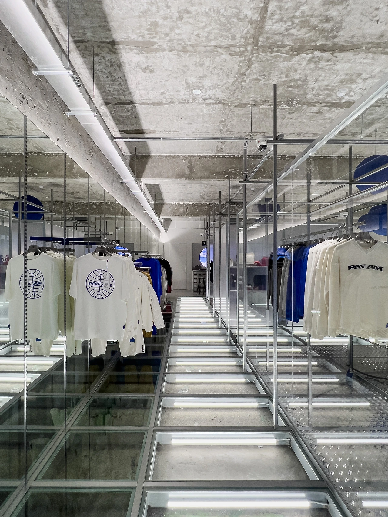 팬암은 1991년 재정난으로 파산한 기업이지만, 패션 브랜드로 새롭게 시작하는 신생아 브랜드이기도 하다. 세계 최고였던 브랜드가 처음으로 돌아가 세계 최초로 서울에 매장을 열었기에, 그들의 출발은 누구보다 간절했을 거다. 그래서 건물의 입구를 그렇게나 관종끼 다분하게 디자인했나 싶다.