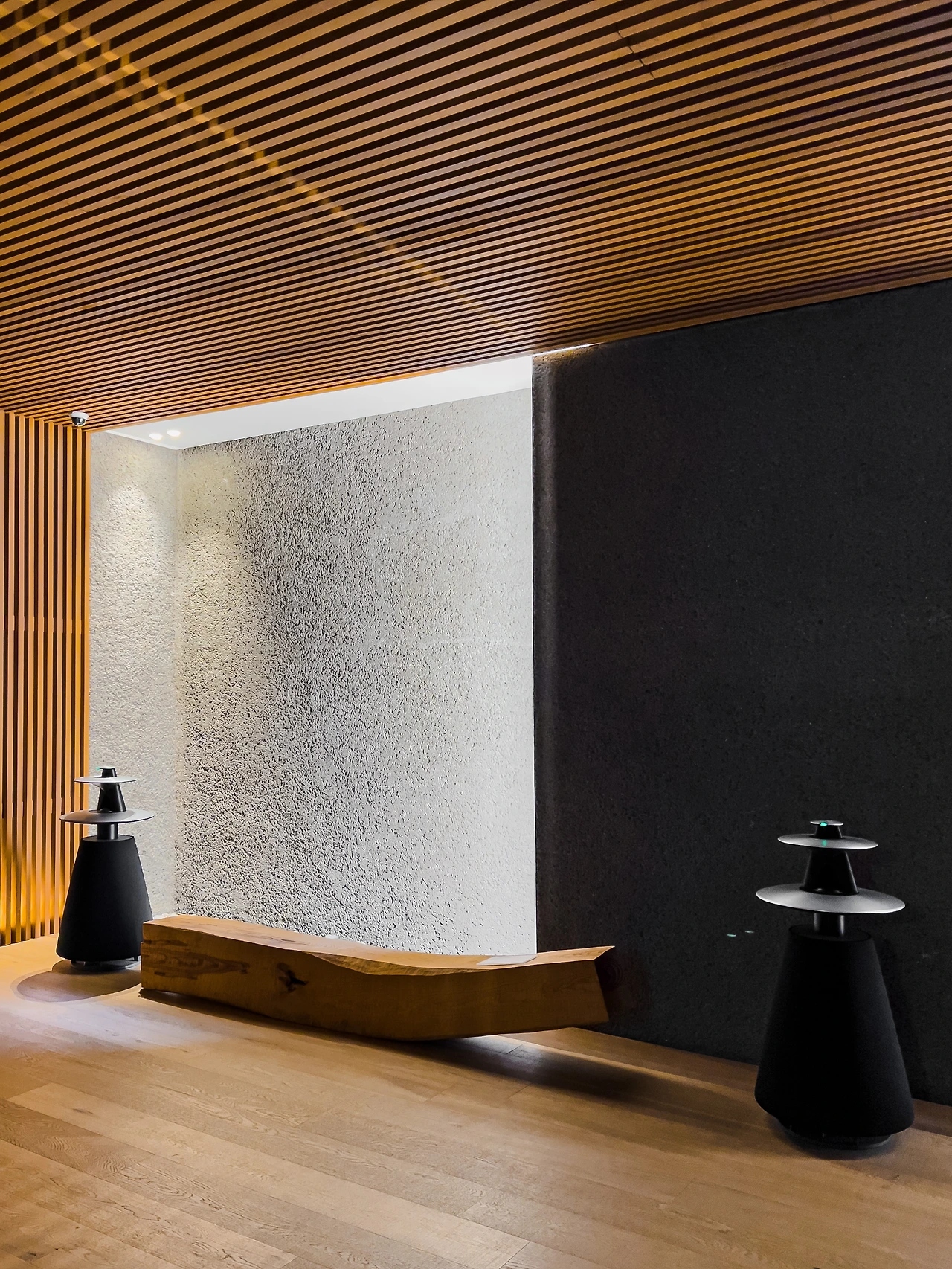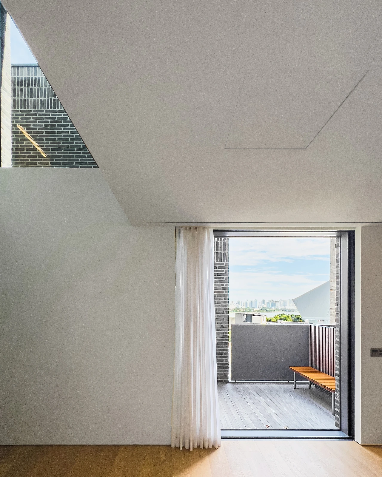 이러한 이유로 이곳은 도시의 경관을 내부에서 최대한 가렸다. 정돈되지 않은 도시의 배경을 보여주지 않는 야외 공간은 오롯이 쉼에 집중할 수 있고, 그곳에 심어진 나무와 걸리는 선 하나 없이 깨끗한 푸른 하늘은 자연의 가장 기본 요소를 제대로 느낄 수 있게 한다. 건물로 들어가는 입구도 도로에 면하지 않았고 이면 도로에서 진입할 수 있게 했으니, 더욱 외부와 경험을 차단하려 하는 모습이다.