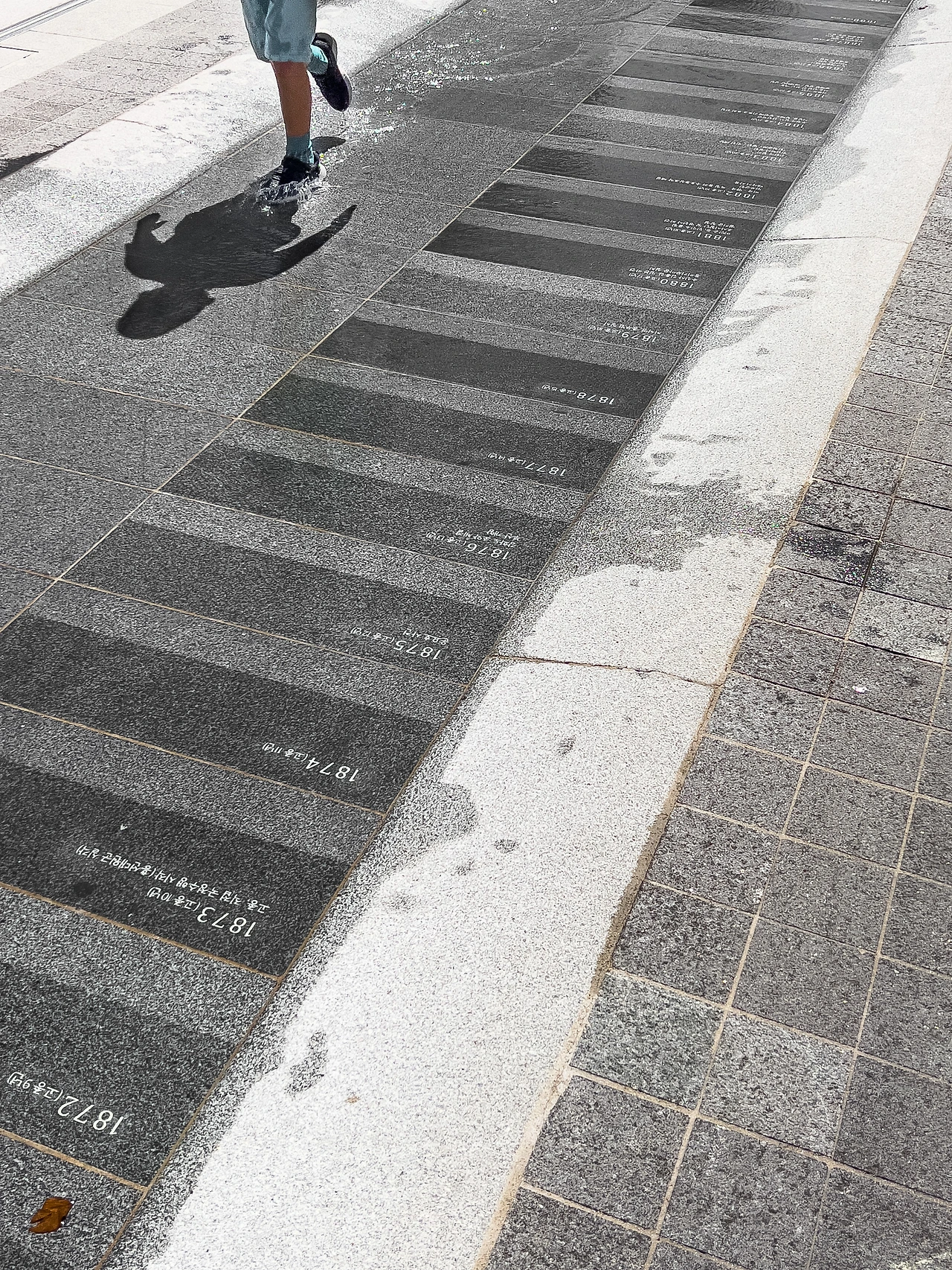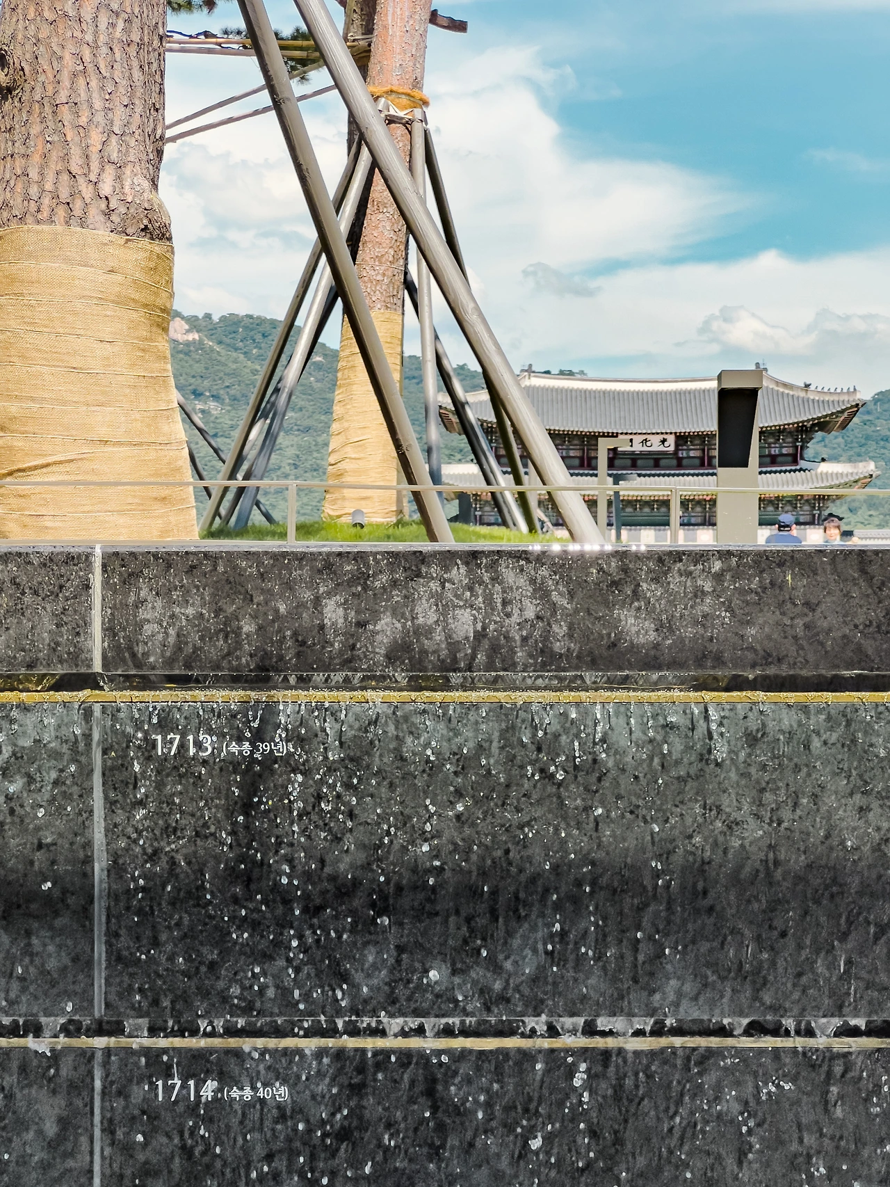 중앙에 있던 광장은 세종문화회관 쪽으로 범위를 넓혔다. 사람들은 넓어진 광장을 부담 없이 즐길 수 있고, 횡단보도를 기다리는 수고로움을 더 이상 하지 않아도 된다. 지하철역에서도 바로 연결되니, 접근성 또한 예전과 비교할 수 없을 만큼 좋아졌다. 근대 도시를 만들기 위해 무자비로 깔았던 차도는 걷어내고 비로소 드러나는 유구는 전시품이 되어 광장을 풍성하게 만든다. 덕분에 시대의 흔적을 찾아보는 재미가 있다.
