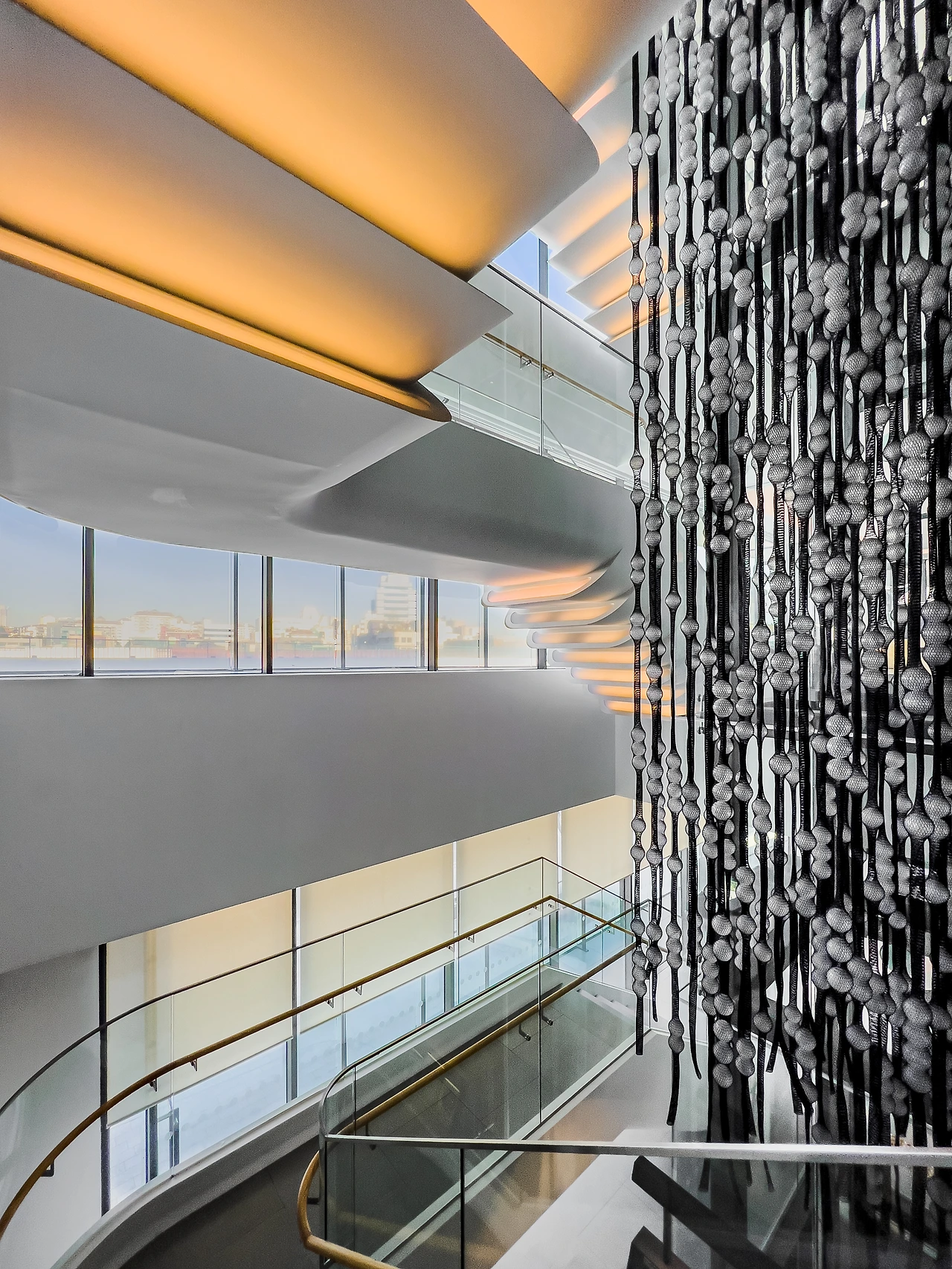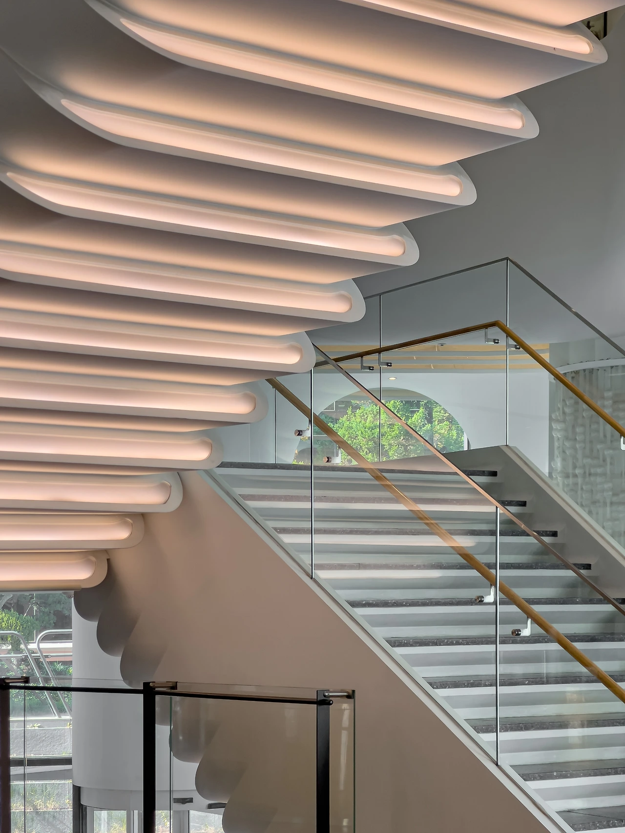 그렇게 탄생한 새로운 공법, ‘PC(Precast Concrete) 공법’은 플라스틱처럼 공장에서 콘크리트를 성형해 작업장에서 조립하는 방식이다. 이는 기둥, 바닥, 보와 같은 주요 부재부터, 장식으로 사용되는 콘크리트 타일까지, 자재를 미리 만들어 현장으로 운송할 수 있었다. 때문에 이것은 공기 단축, 공사비 절감, 품질 관리에 용이했다. 롯데월드타워의 상층부는 이 공법을 통해 엘리베이터와 계단 부분의 구조를 해결했으며, 오늘 소개할 공간 또한 이 공법을 활용하여 재료와 기술의 가능성을 보여준다.