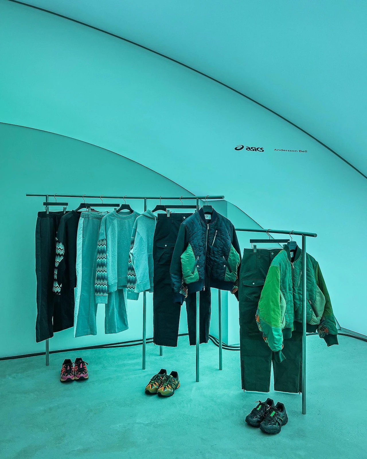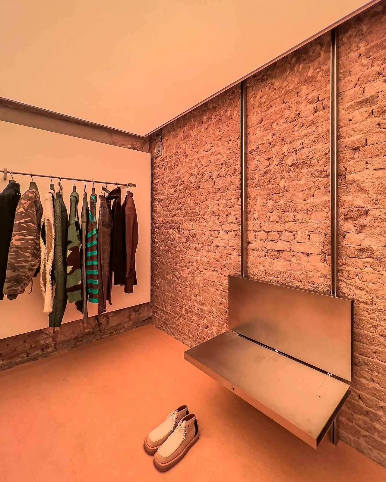현 상황을 풍자하는 룩북과 룩북 영상에서 볼 수 있는 앤더슨벨의 위트를 공간에서도 찾아보는 재미가 있다. 벽면이 아닌 천장에 설치된 거울과 어긋난 조명 배치, 건물로 진입하기 전 비어있는 일부 계단이나 지붕 한쪽에만 붙은 철제 플레이트는 이질적인 것들과 생각지 못한 발상들로 또 다른 아름다움을 만들어낸다.