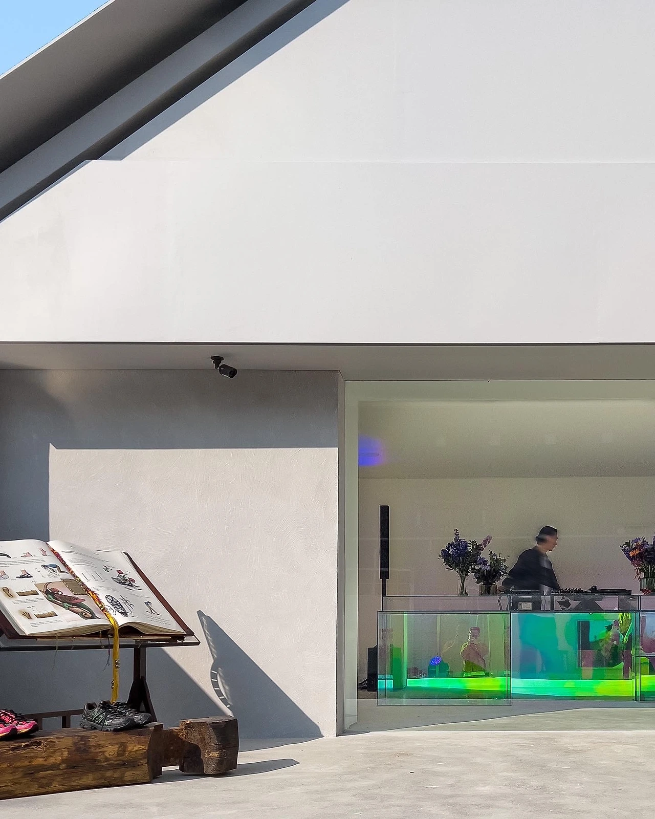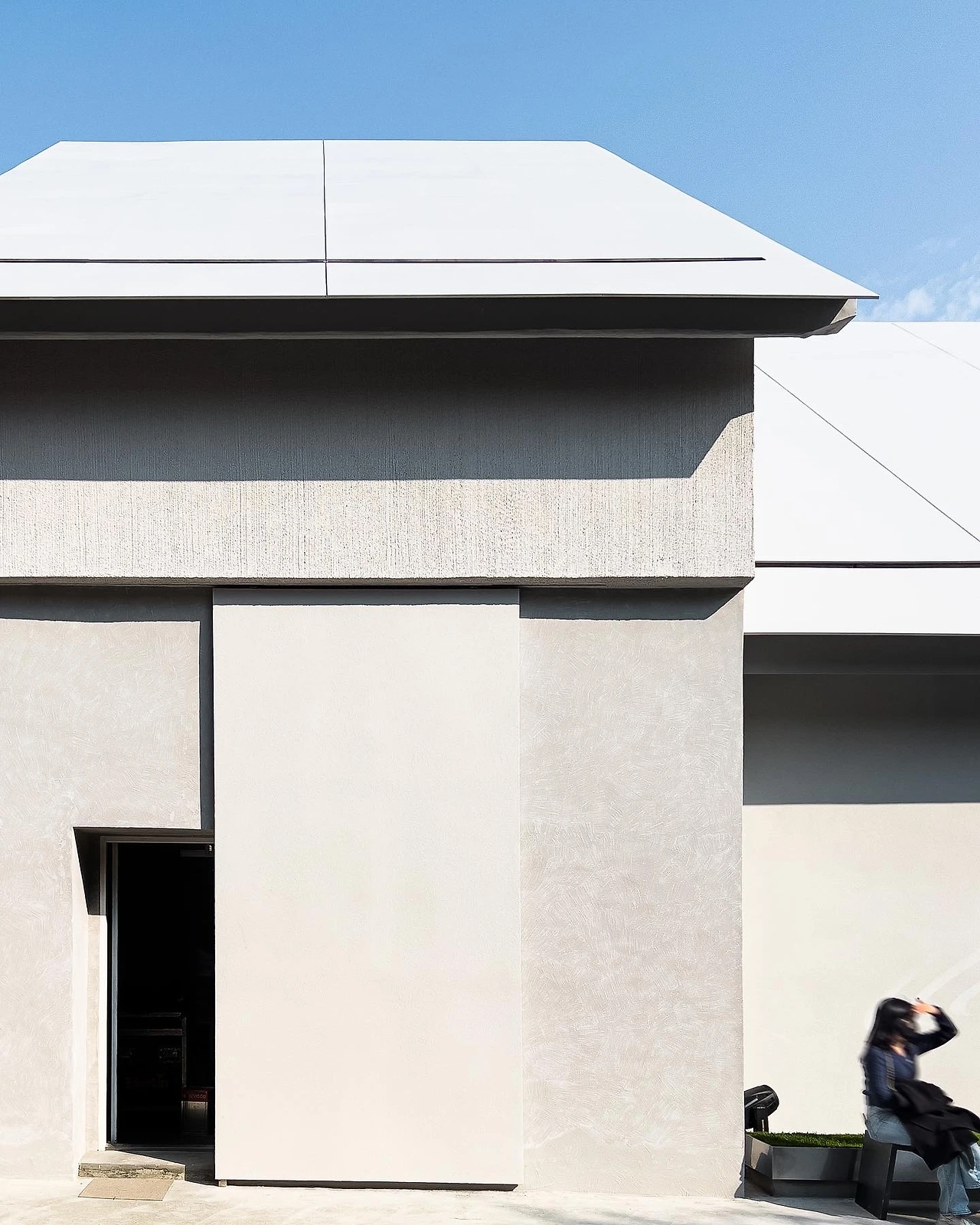 청담, 성수, 홍대가 아닌 안국동에 매장을 연 이곳은 주변의 고즈넉한 거리와 전통 건축에 대응하는 제스처를 보여준다. 날카롭고 화사하며 세련되고 차갑게 보이는 건물이 이질적으로 동네와 어울릴 것 같아 보이지 않는다. 하지만 두 개의 박공지붕이 서로 어긋나게 배치된 모습이며, 백색으로 칠해진 건물이 주변을 비춰 환하게 하니, 묘하게 동네와 어우러진다. 이는 브랜드의 이미지와도 알맞다.