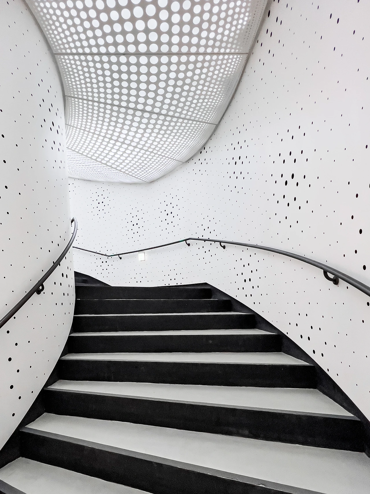 이런 형태를 구현하기 위해 구조는 건물 바깥에서 프레임을 만들었고, 덕분에 내부는 엘리베이터와 계단이 있는 중심부를 제외하곤 기둥 하나 없는 넓은 공간을 경험할 수 있다.