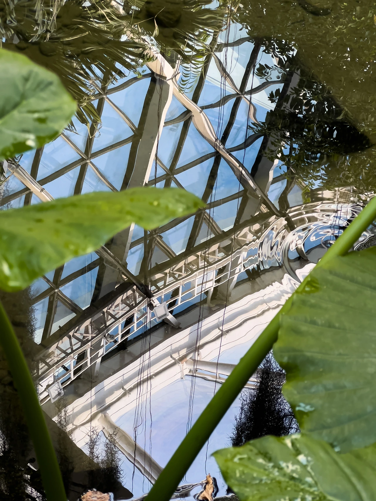 사시사철 푸르름을 유지하는 온실은 마치 꽃을 연상케 한다. 가운데가 높게 솟은 돔 형태의 일반적인 온실과 다르게, 중심부가 오목하고 테두리 부분이 높아지는 그릇 형태를 사용해서 시선은 자연스레 밖을 향하게 한다. 덕분에 크게 자라는 식물이 중심부에만 심어지는 것을 막아, 아기자기한 식물을 다양한 위치에 심을 수 있게 했다.