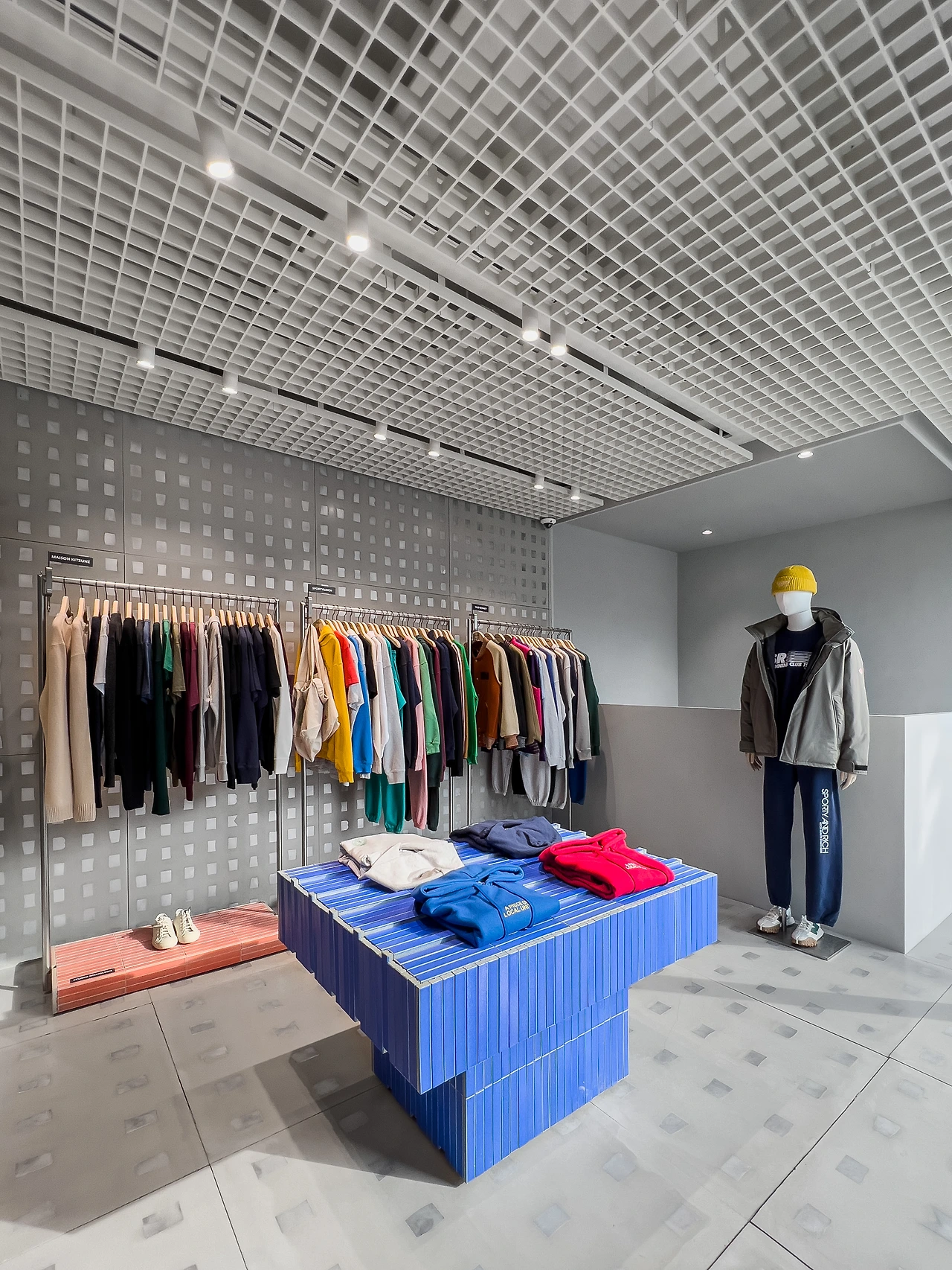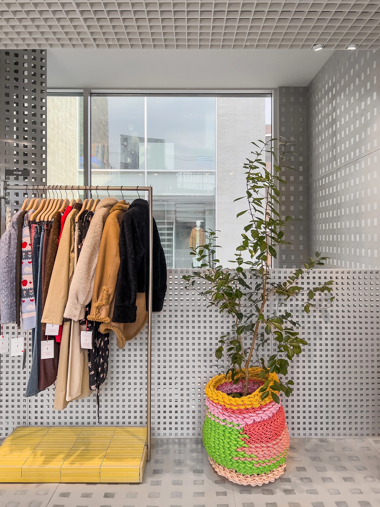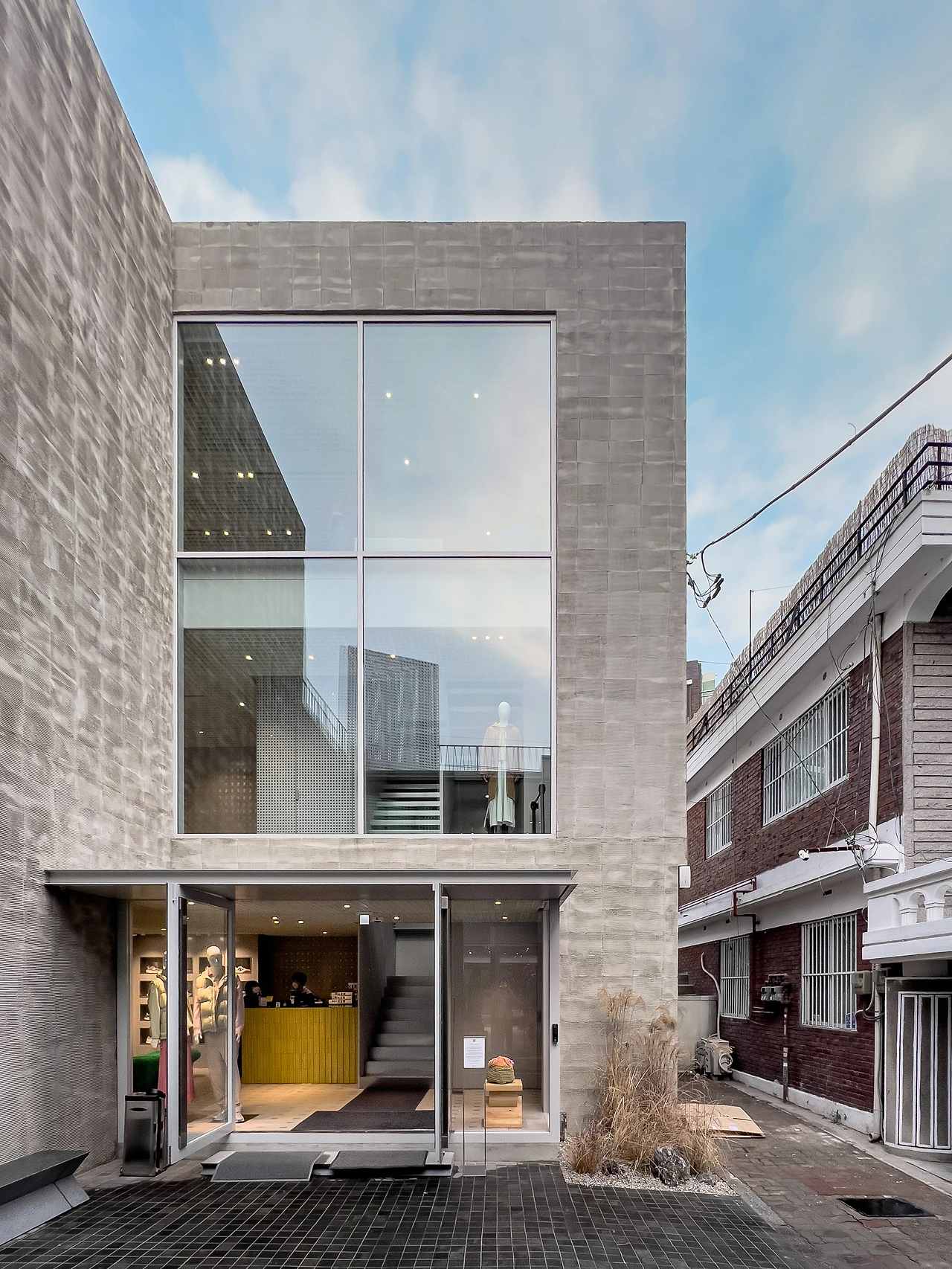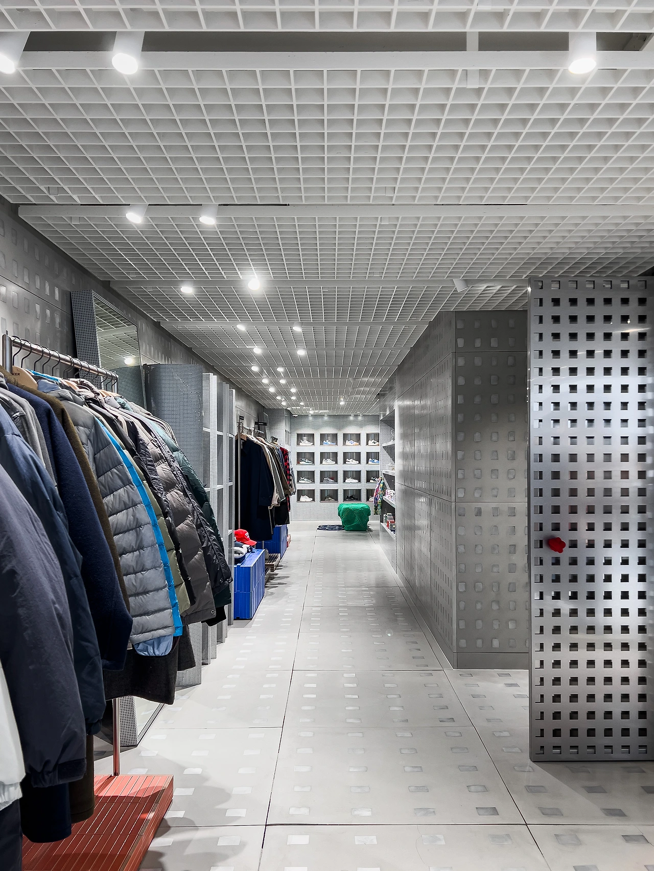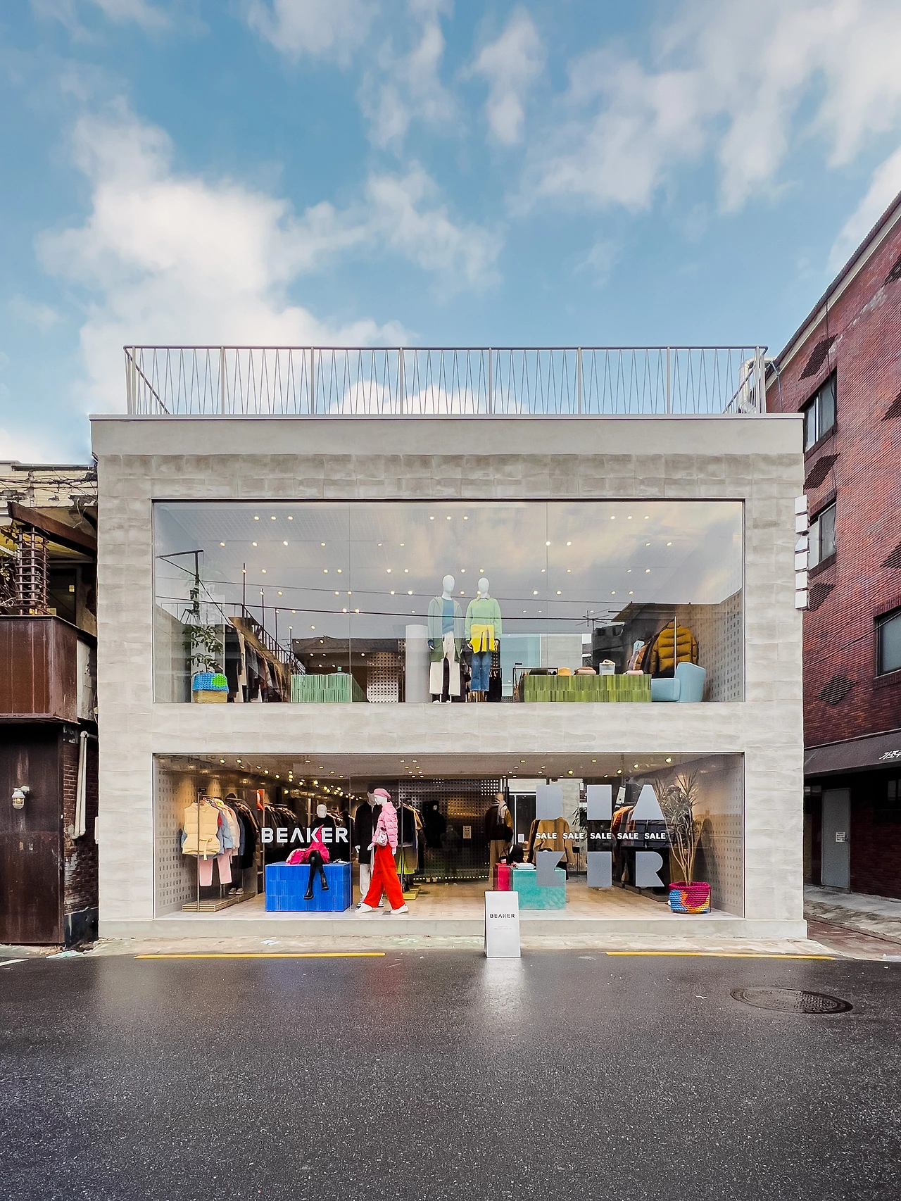 성수동은 젊은이들의 문화가 꽃피우는 장소고, 비이커는 옷을 통해 문화를 연결하고 융합하는 브랜드이기에 공간 안에 흩뿌려진 금속과 작게 쪼개져 패턴을 만드는 외벽, 다채롭게 진열된 상품이 성수동의 활기참과 다양성을 대변해주고 있는 것 같기도 하다. 그래서 때론 제품의 건축을 통해 브랜드의 개성을 보여주기도 하지만, 그곳이 자리한 지역성도 보여줄 때가 있어, 제품의 건축, 상징의 건축은 명확히 이분화하기엔 어려움이 있다.