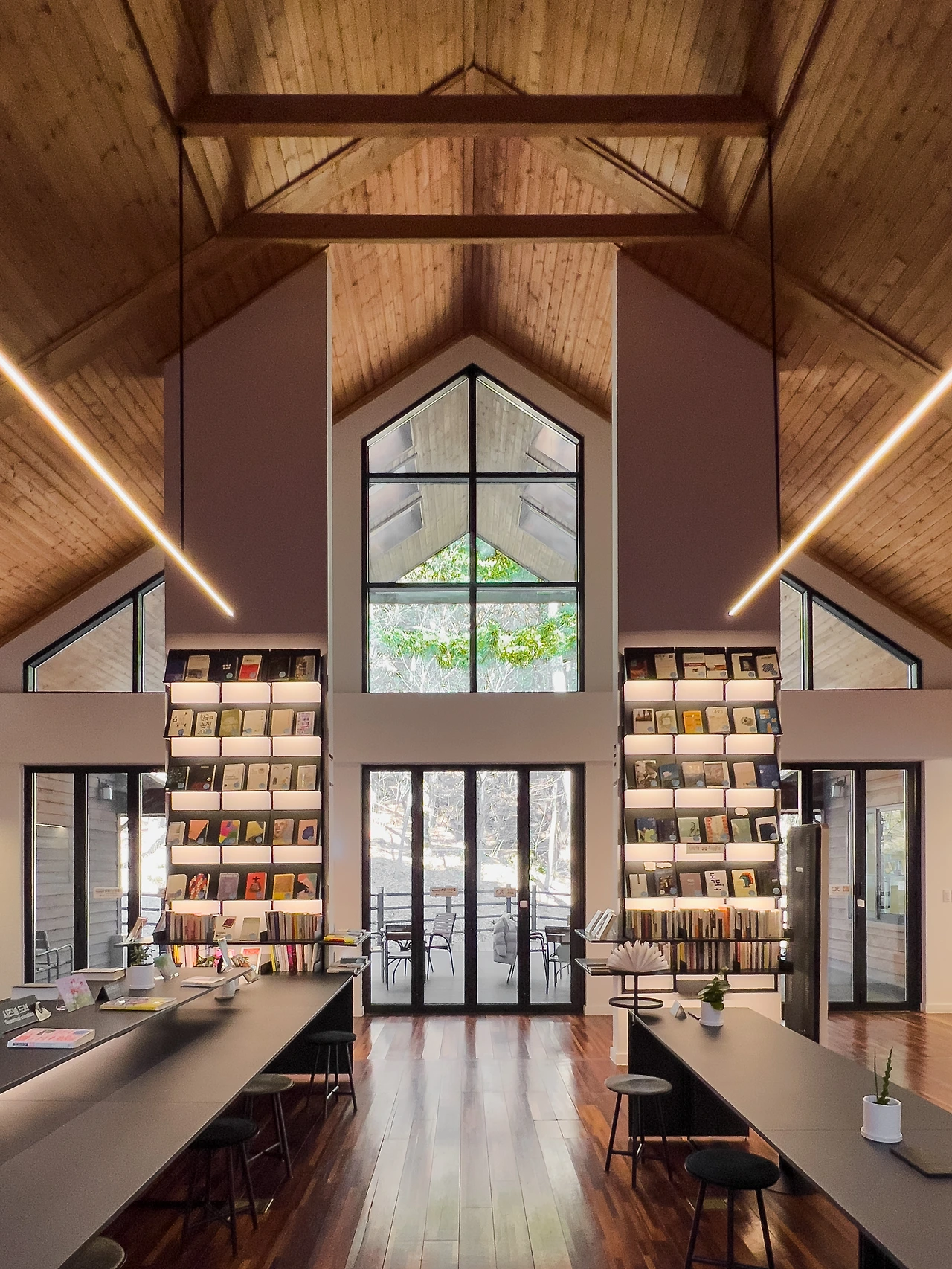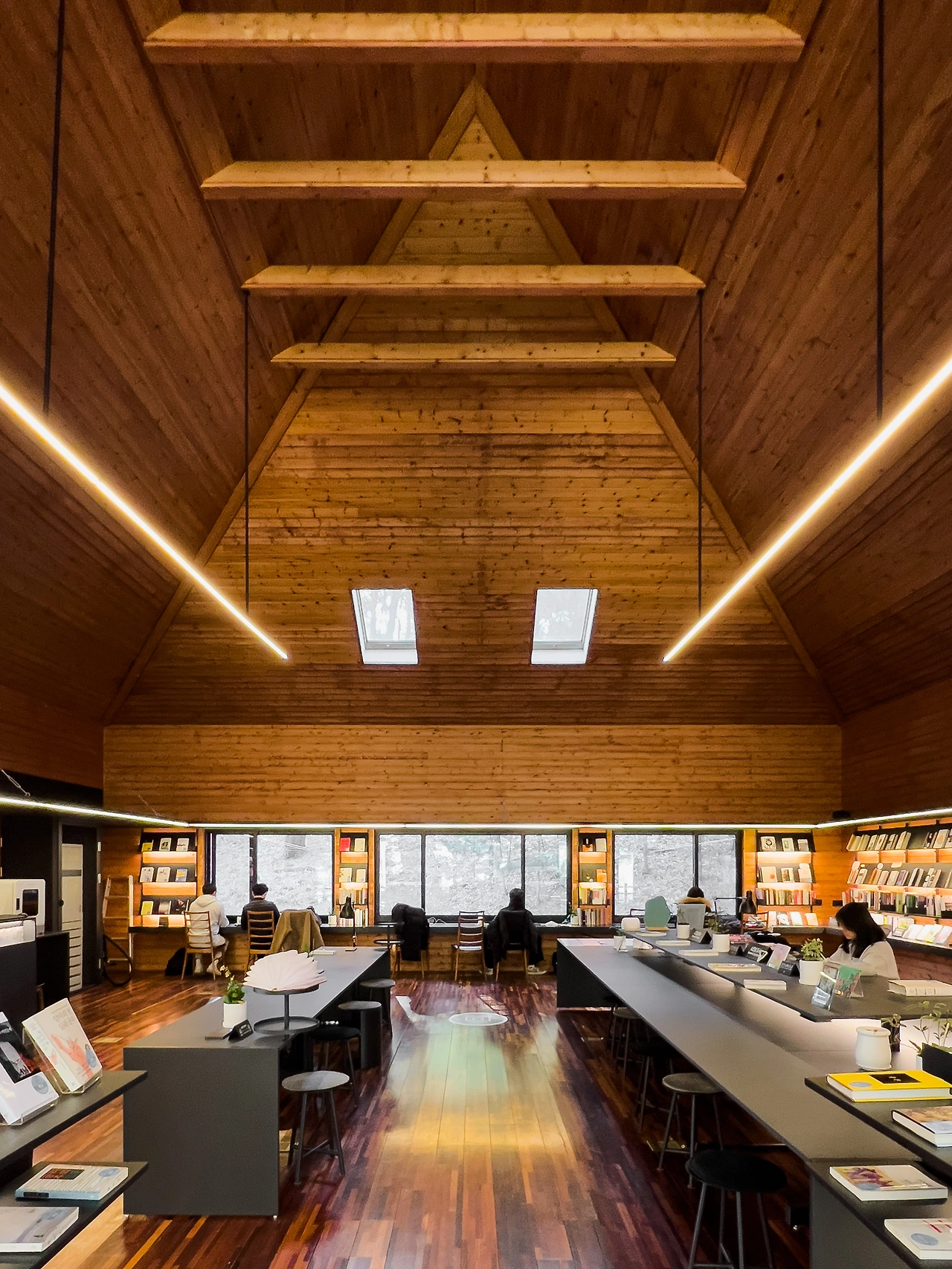 천장을 덜어내면서 드러난 높고 경사진 목조지붕은 장엄하고 아늑한 건물 본연의 풍채를 뽐낸다. 창의력은 층고와 비례한다는 연구 결과가 있지 않은가? 학생들이 와서 독서뿐만 아니라 공부하기에도 최적이다. 사방이 숲이니 내부는 자연으로 가득 차고 방해하는 요소가 없으니 책에 온전히 집중할 수 있다. 내가 어린 시절 갈망했던 독서 공간이 실제로 실현된 느낌이다.