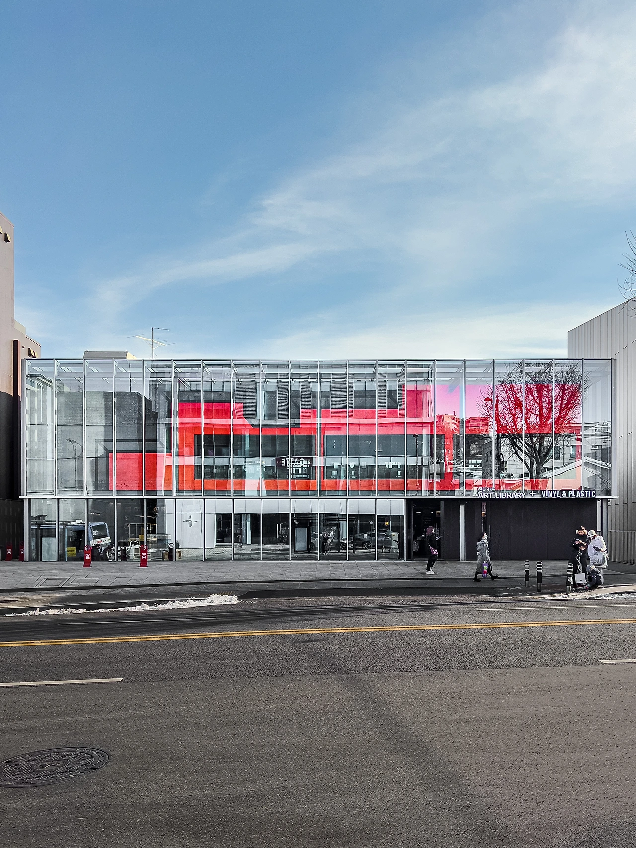 건물의 2층이 아트 라이브러리로 현대카드 소지자 및 DIVE 앱 회원만 입장 가능.